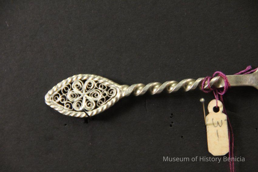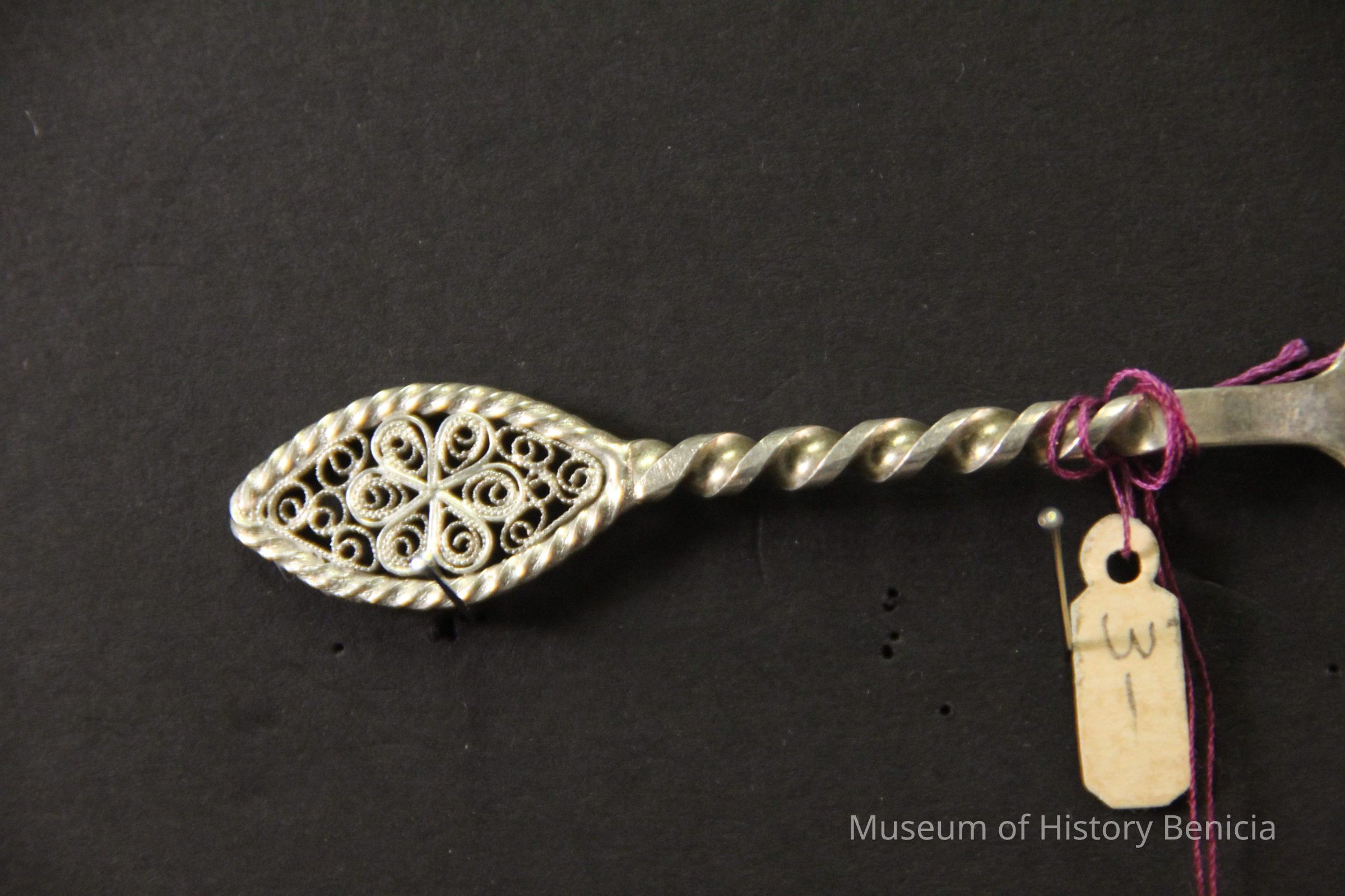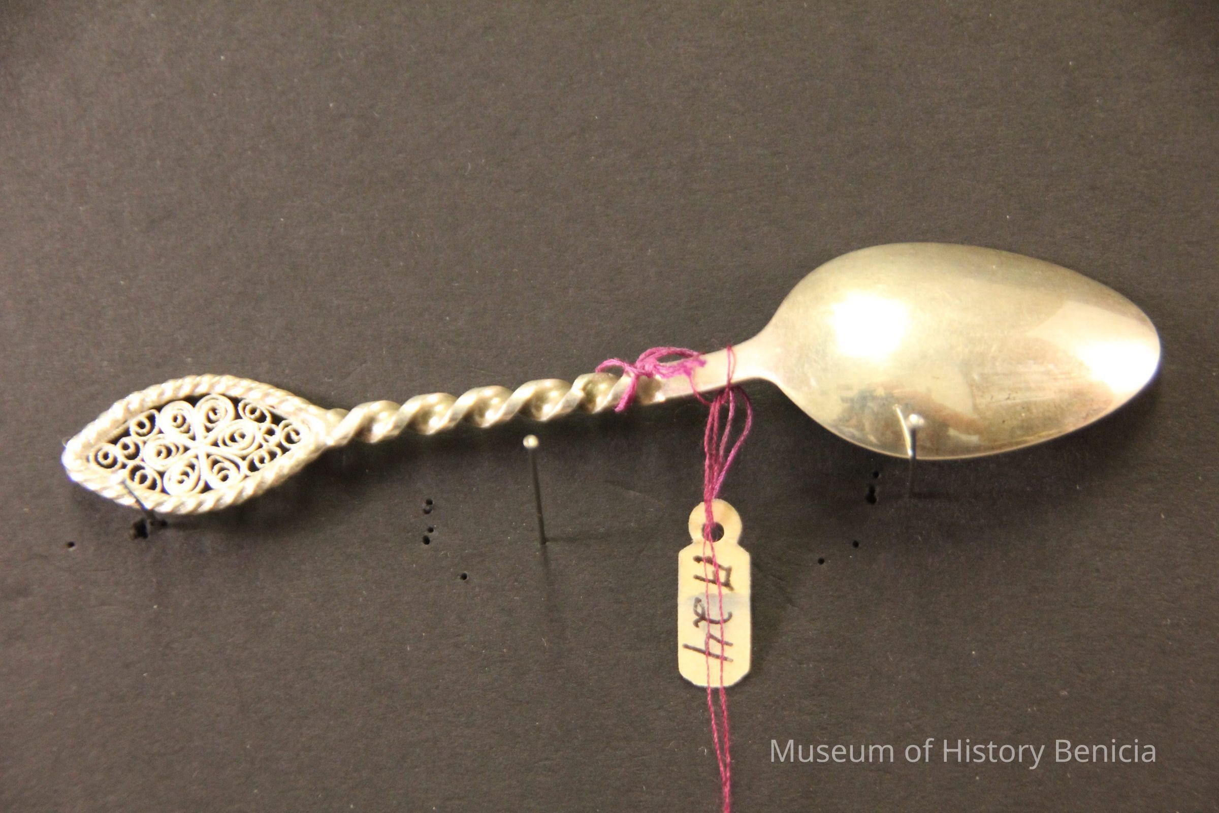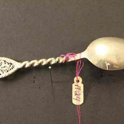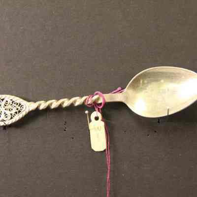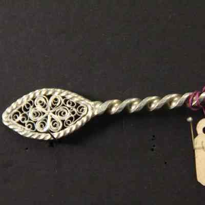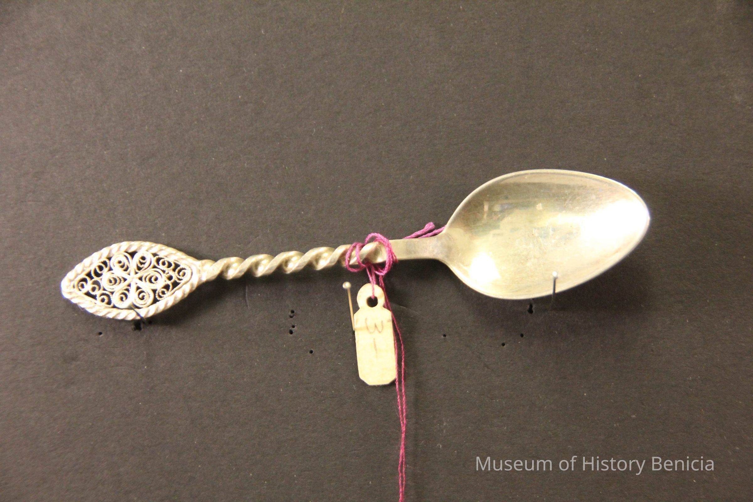 Souvenir spoon from Myrtle Mann collection. This spoon is from maybe Pacific Islands?. It is 3.75" long.