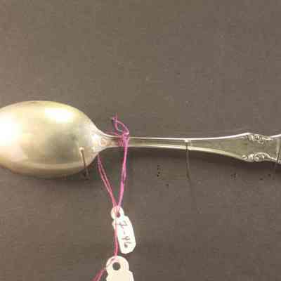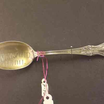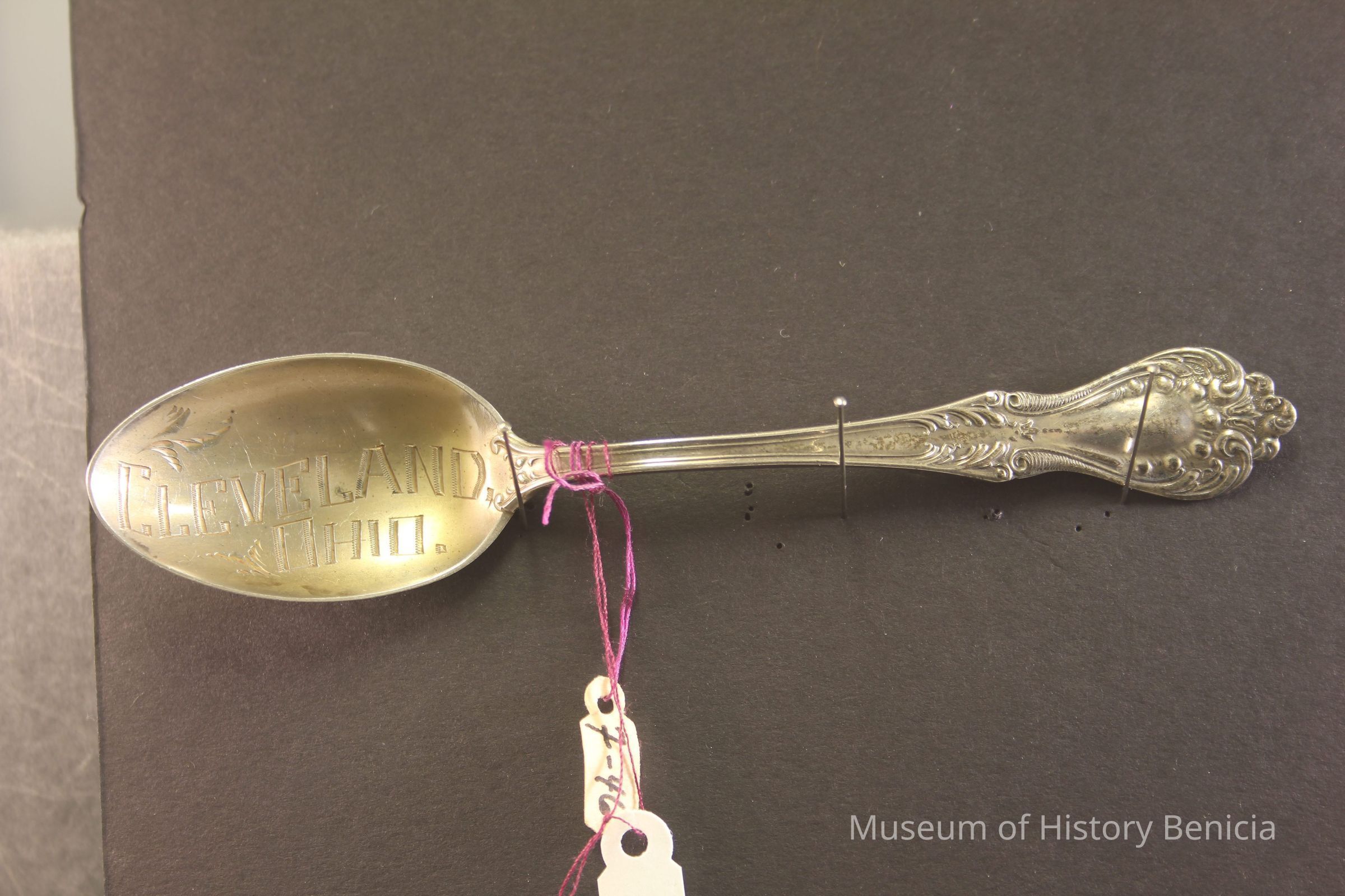 Souvenir spoon from Myrtle Mann collection. This spoon is from Cleveland, Ohio. It is 5.50" long.