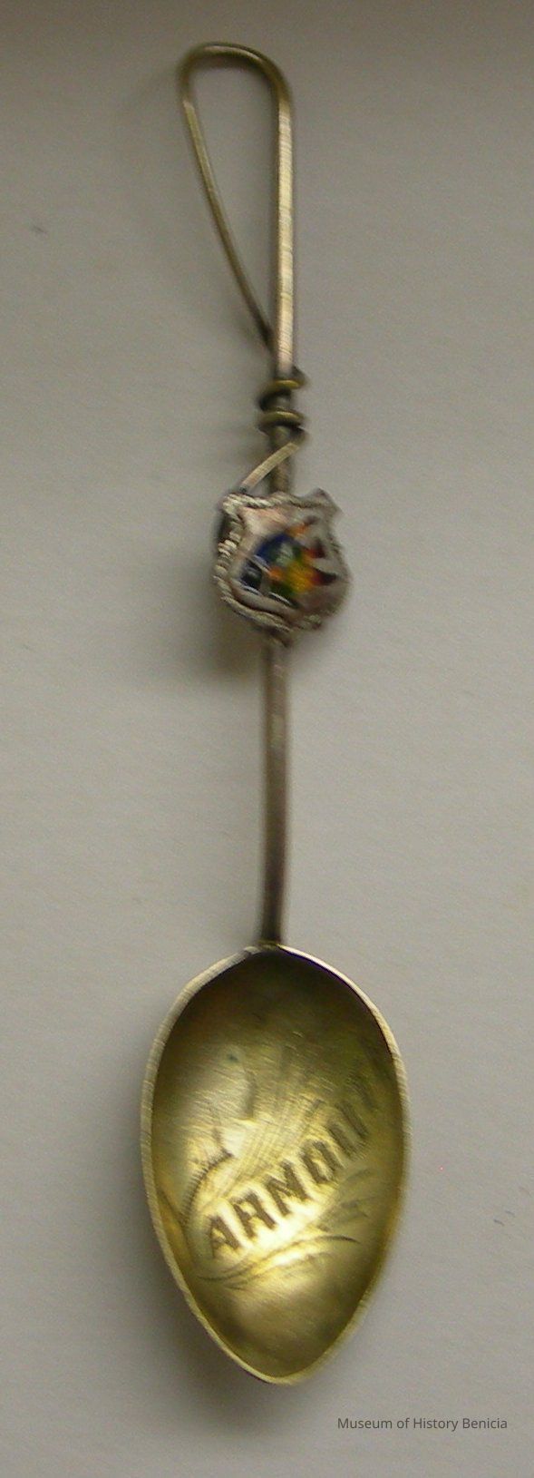 Silver spoon from Yarmouth, England, with enamel fish on the handle
