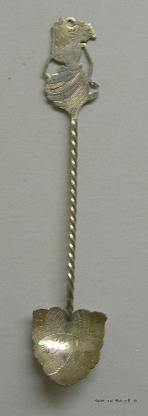 Silver spoon from Bali. Has spiral handle and the bowl is shaped like a leaf #G-24 in catalog/journal