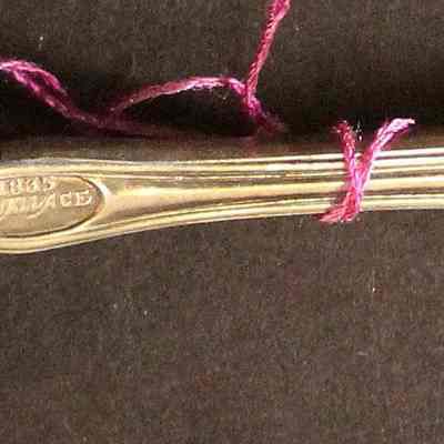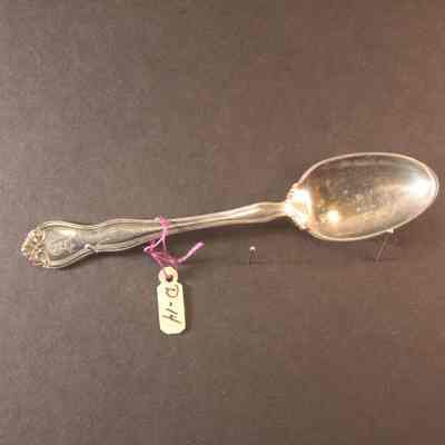 Souvenir spoon from Myrtle Mann collection. This spoon has the letter "A" on top. On the back of the shaft it says The Antlers 1906".It is 4.25" long.