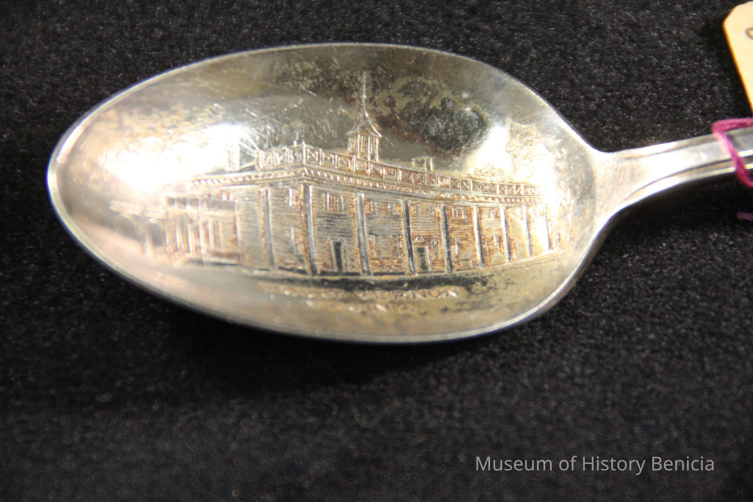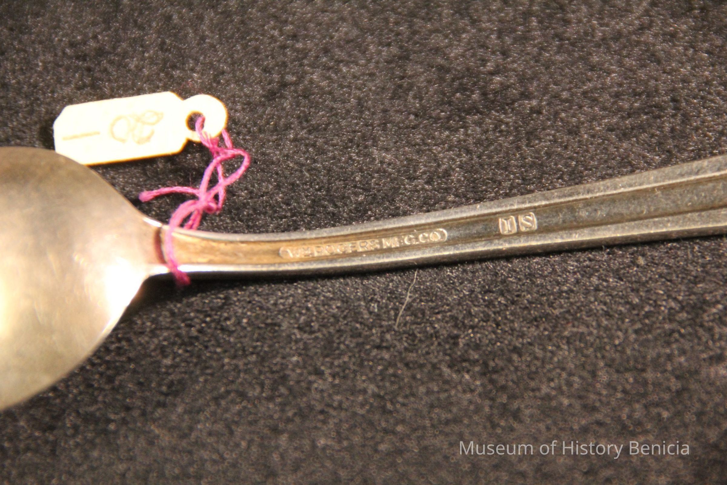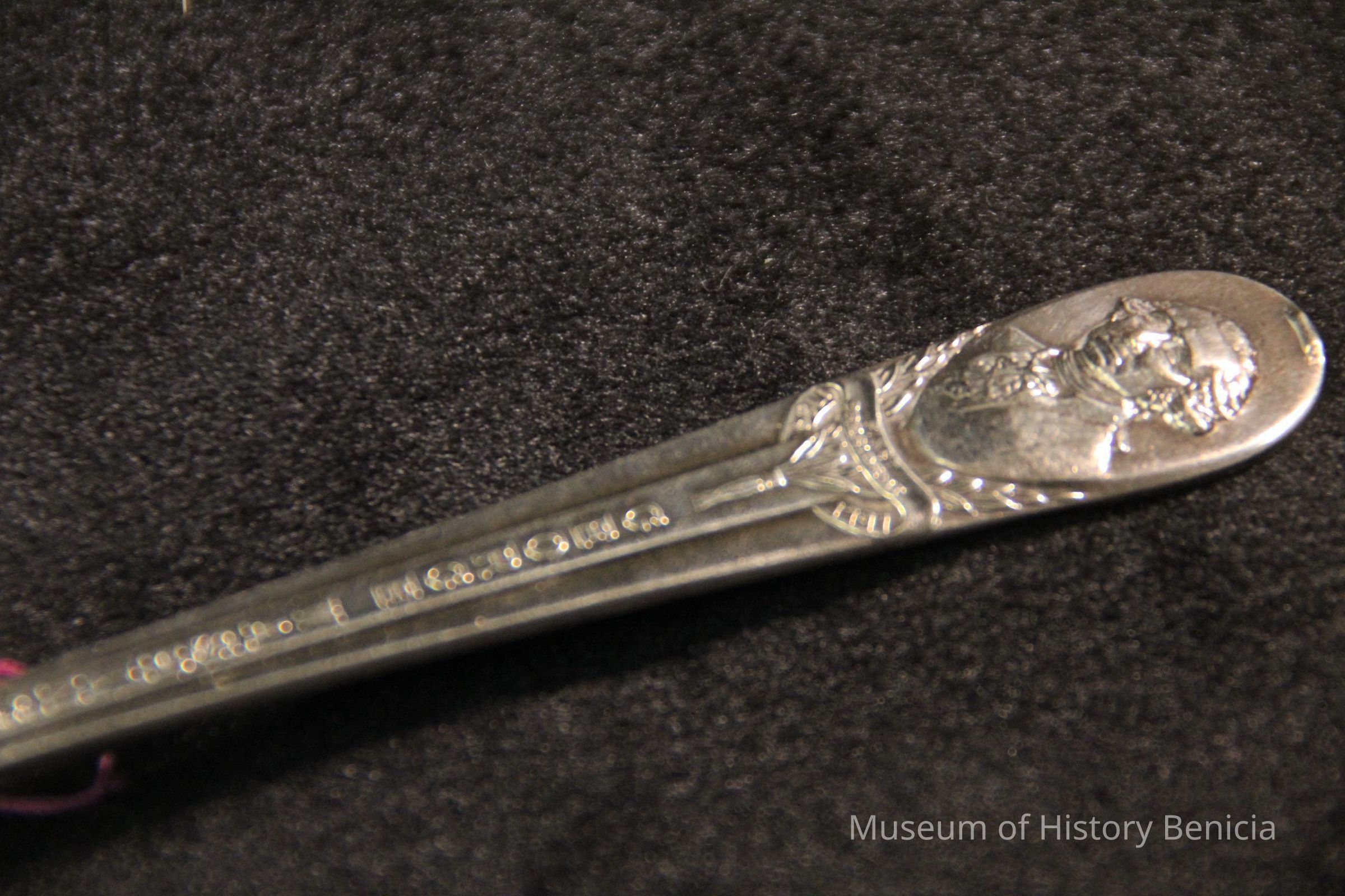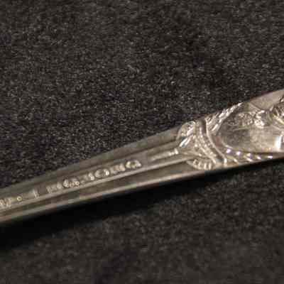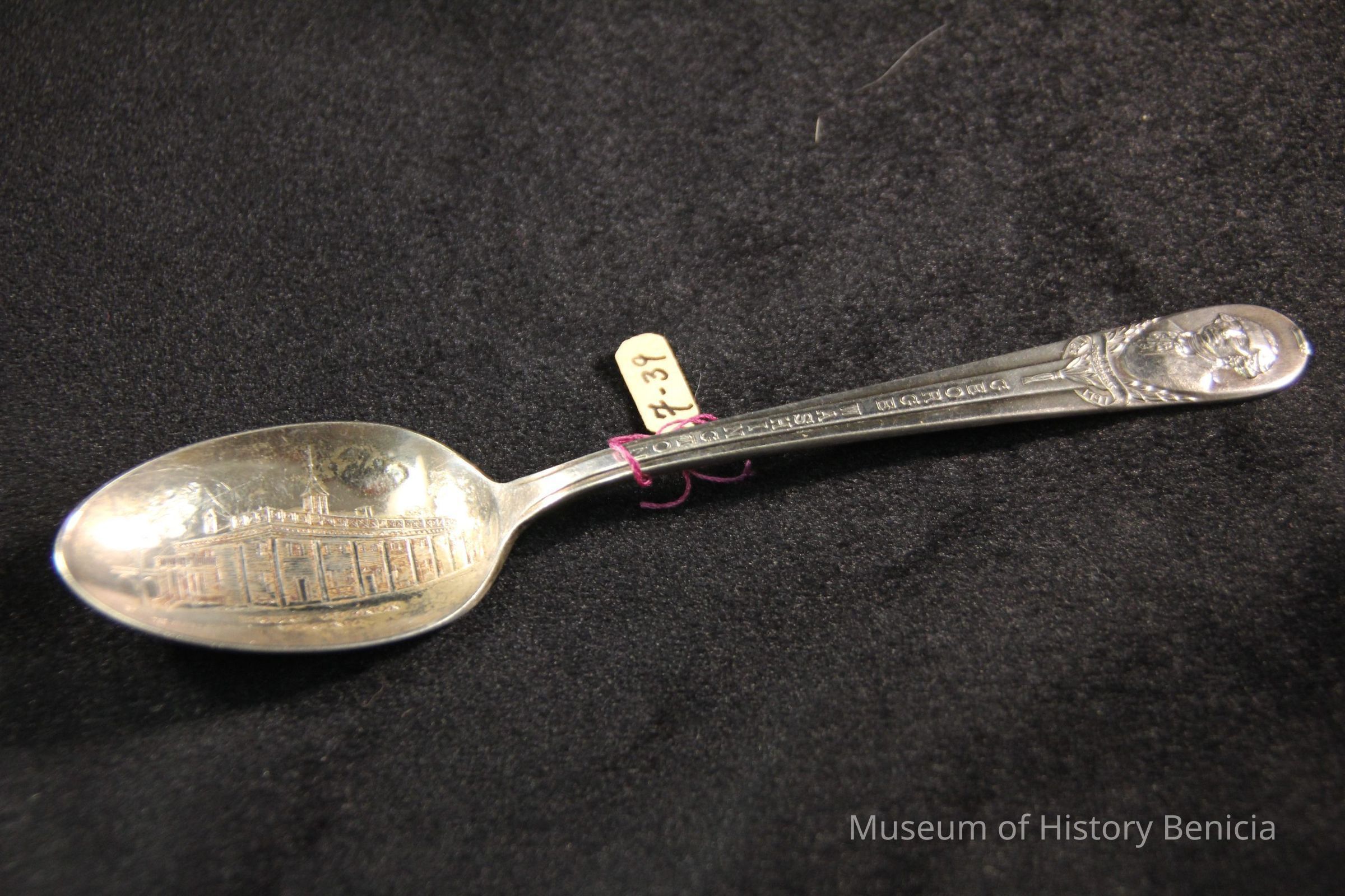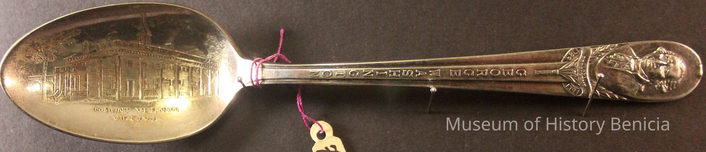 Souvenir spoon from Myrtle Mann collection. This spoon has the word "George Washington" on the handle and the words "Mount Vernon Virgina" in the bowl. There is a bust of George Washington on the top of the handle. It is 6.0" long.