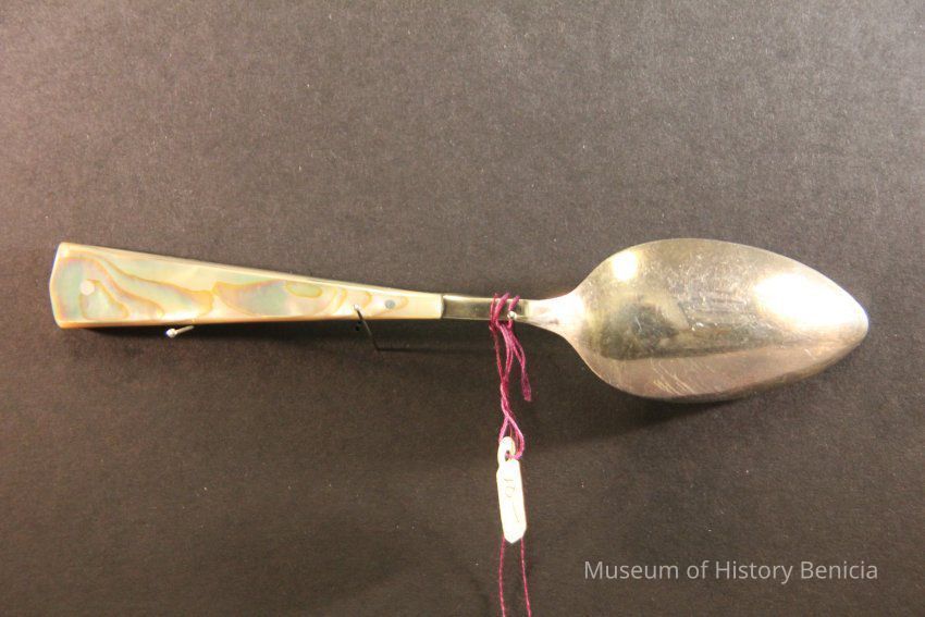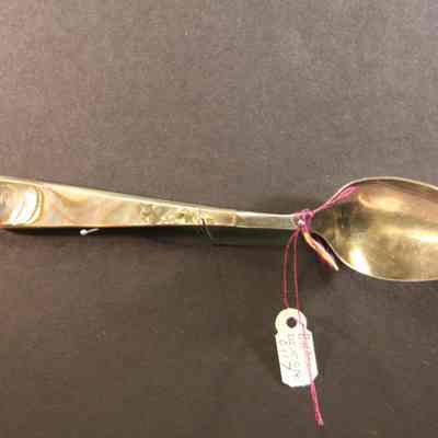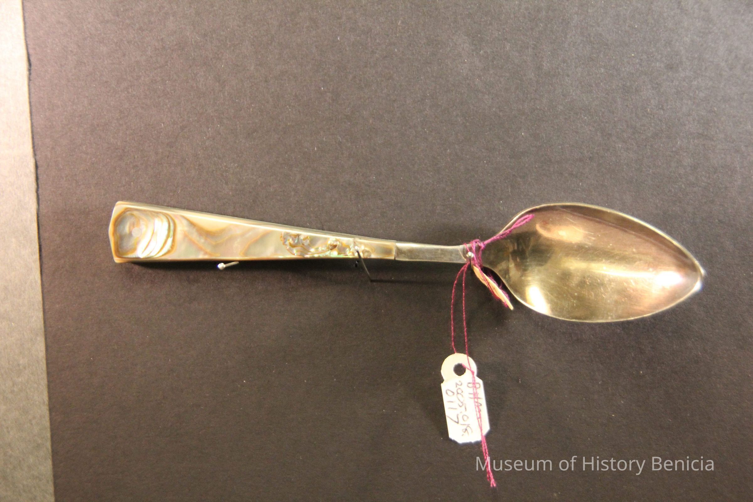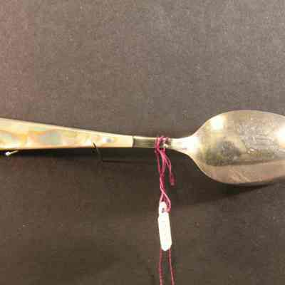 Souvenir spoon from Myrtle Mann collection. This spoon has a mother-of-pearl handle. It is 5.50" long.