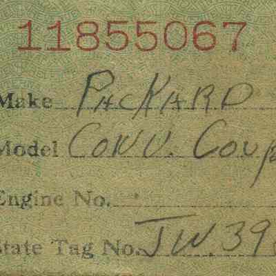On back: #11855067, Make: Packard, Model: Conv. Coupe