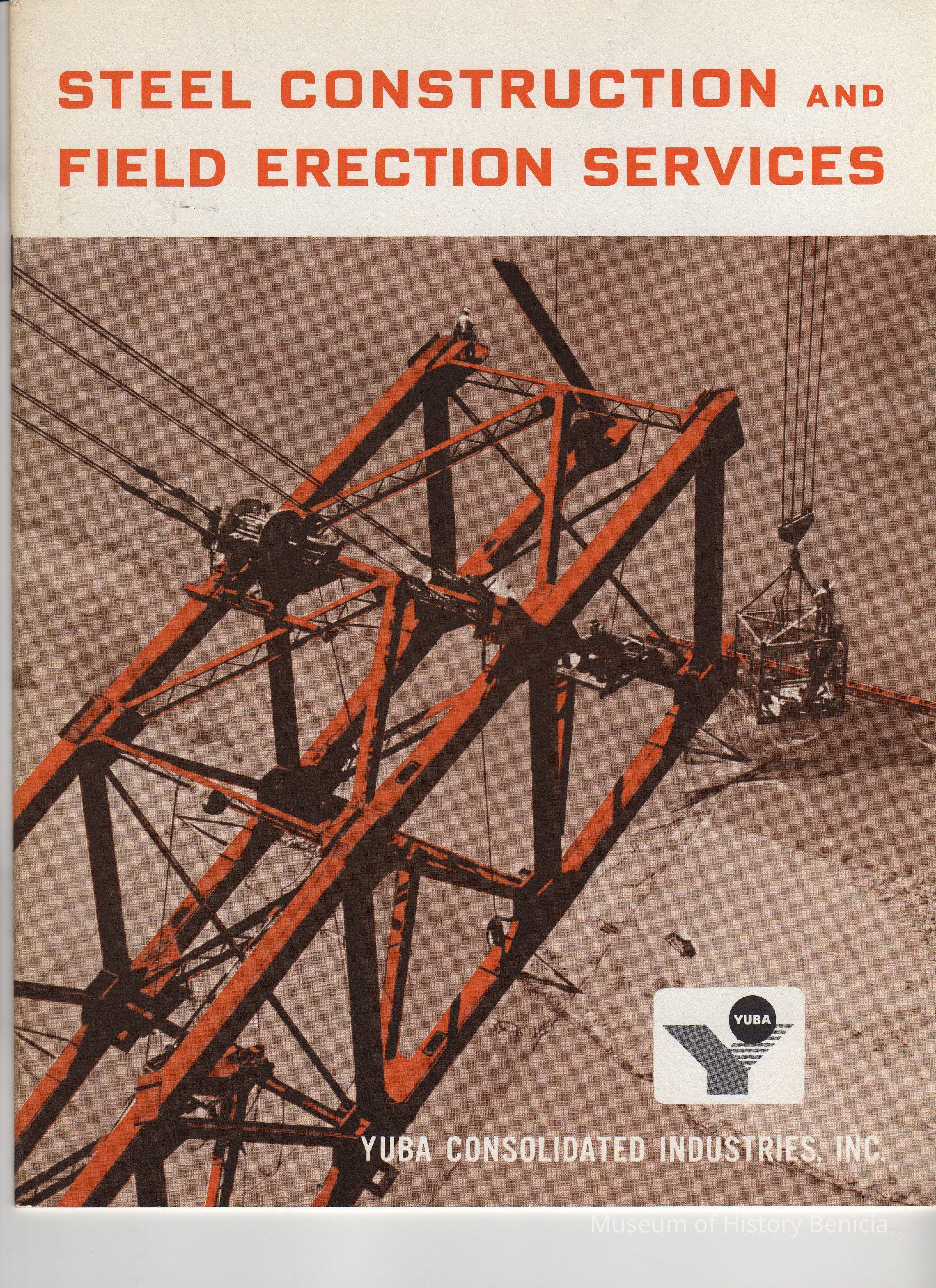 "Steel Construction and Field Erection services/Yuba Consolidated Inductries Inc" Orange and brown on white paper covers; photo of crane (?) on front.Collection