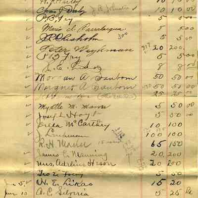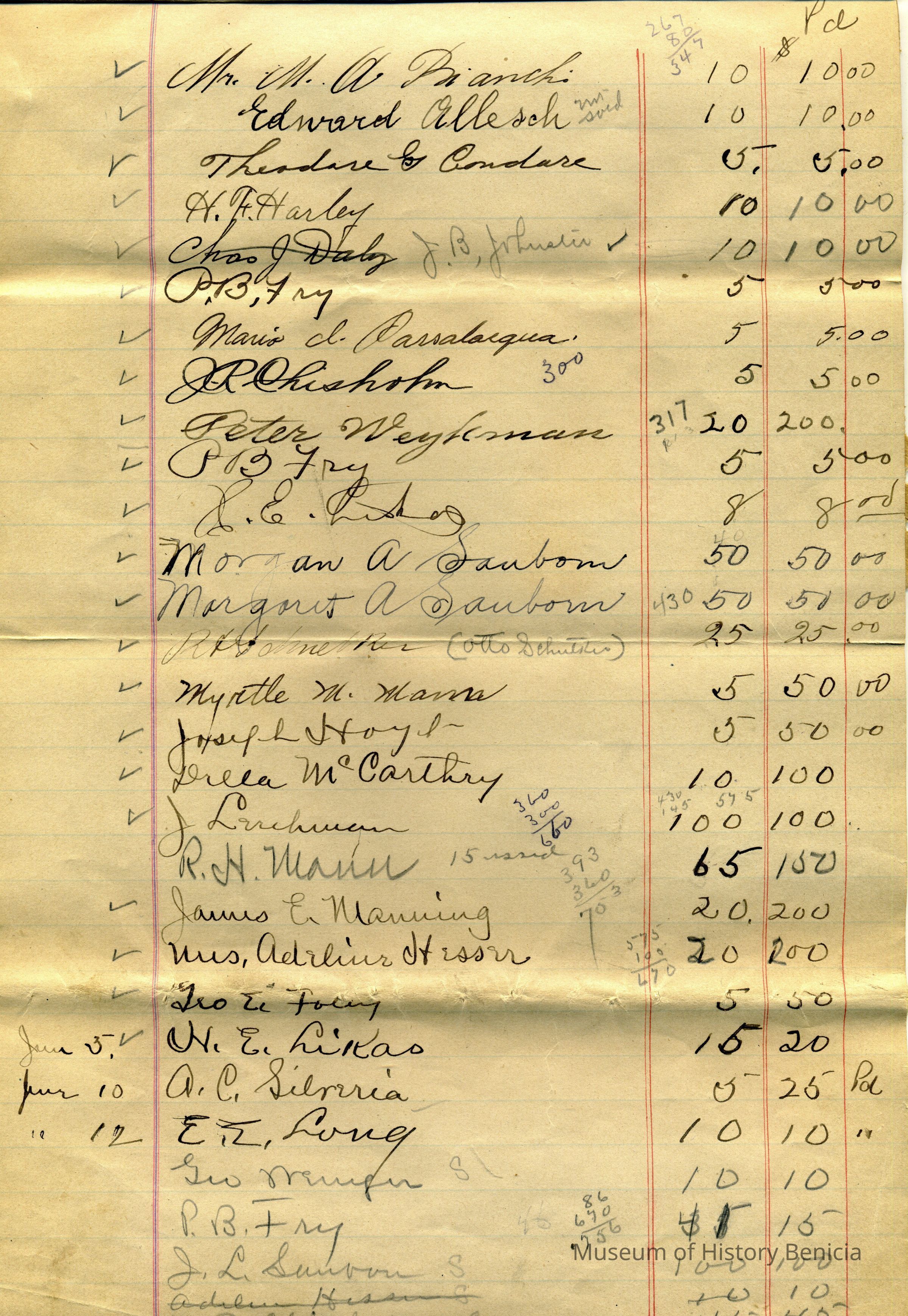 List of stock holders, how many shares and dollars paid, no date. Stock holders in the Martinez-Benicia Ferry and Transportation Co.
