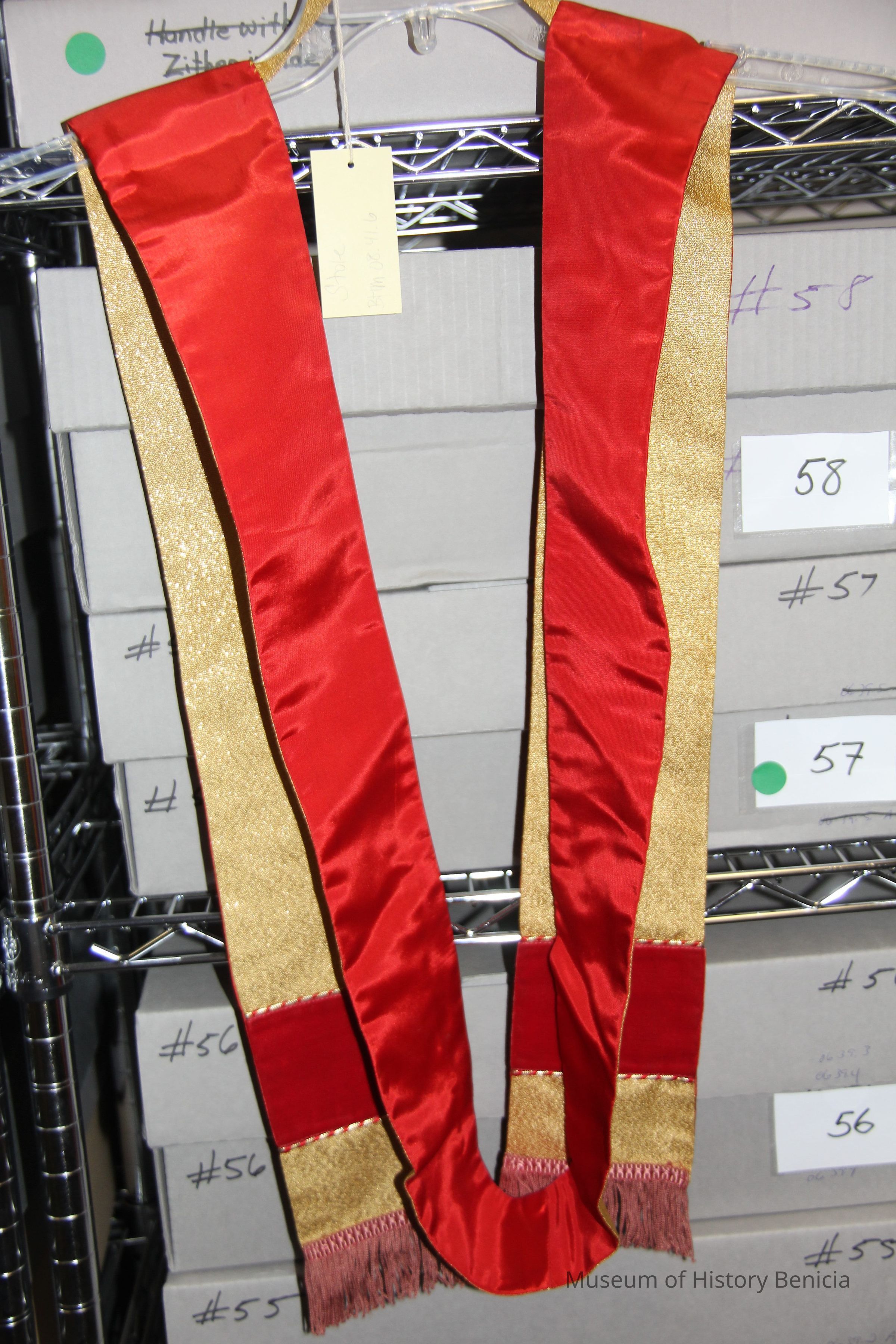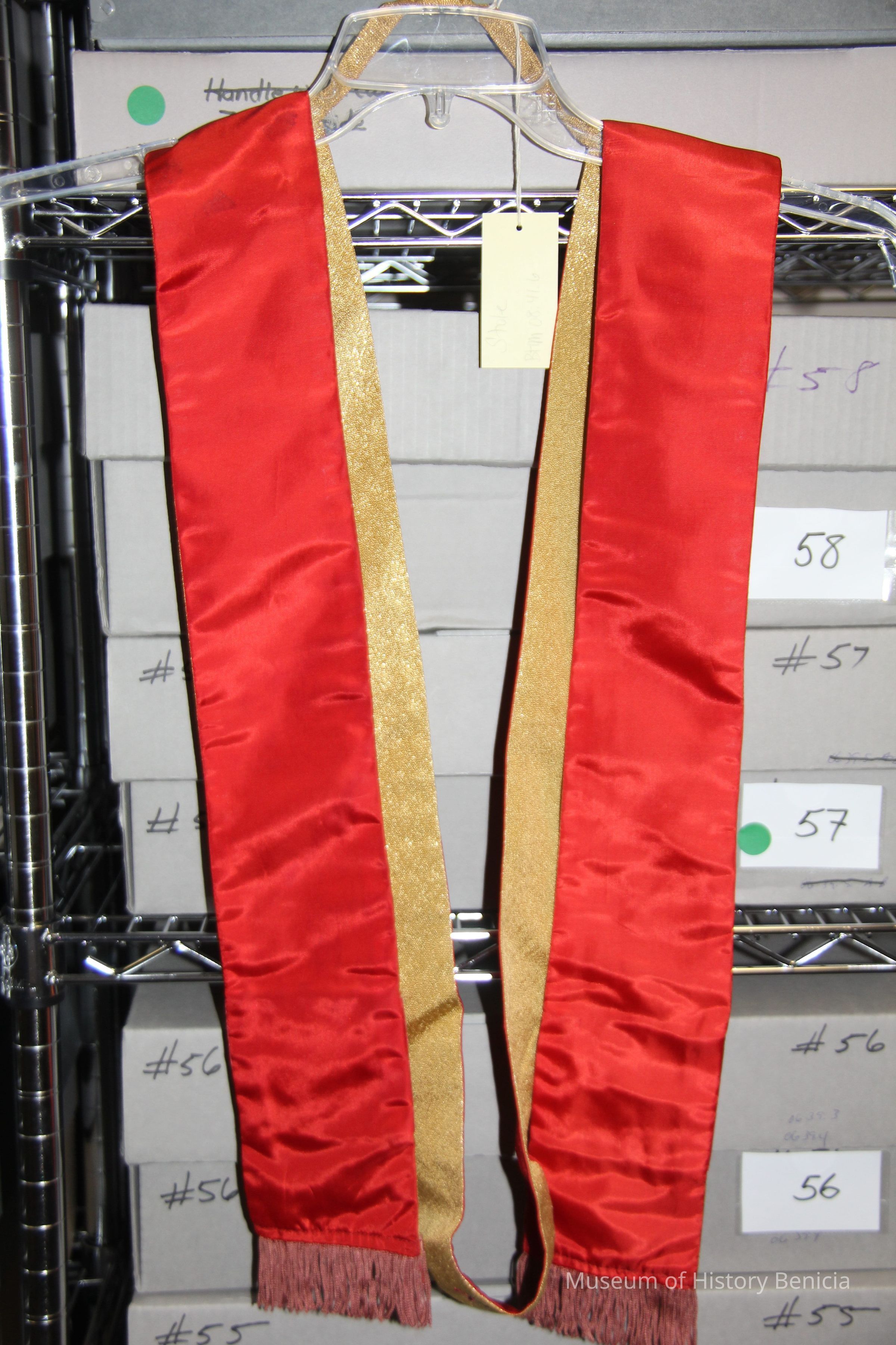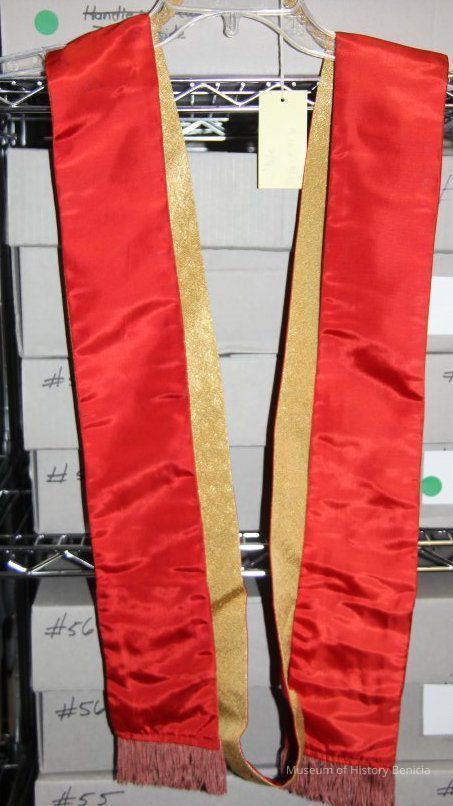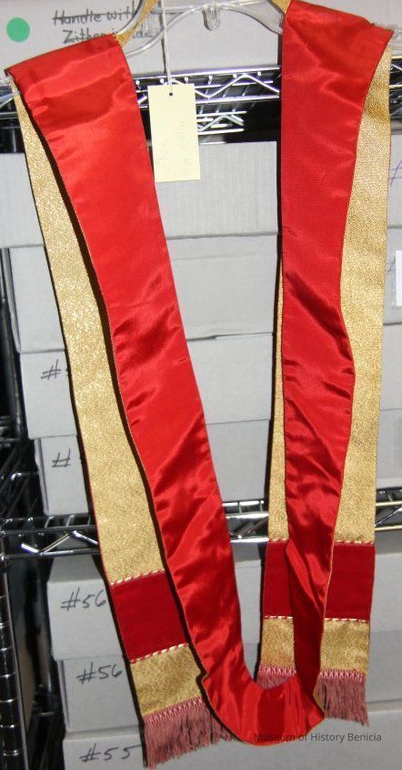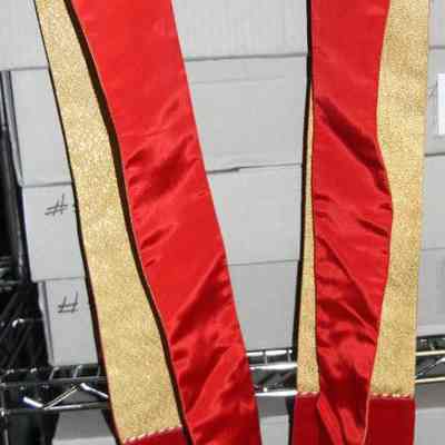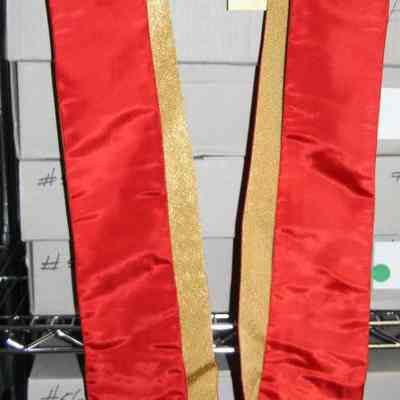 Gold and red deacon stole used at St. Dominics Church in Benicia.