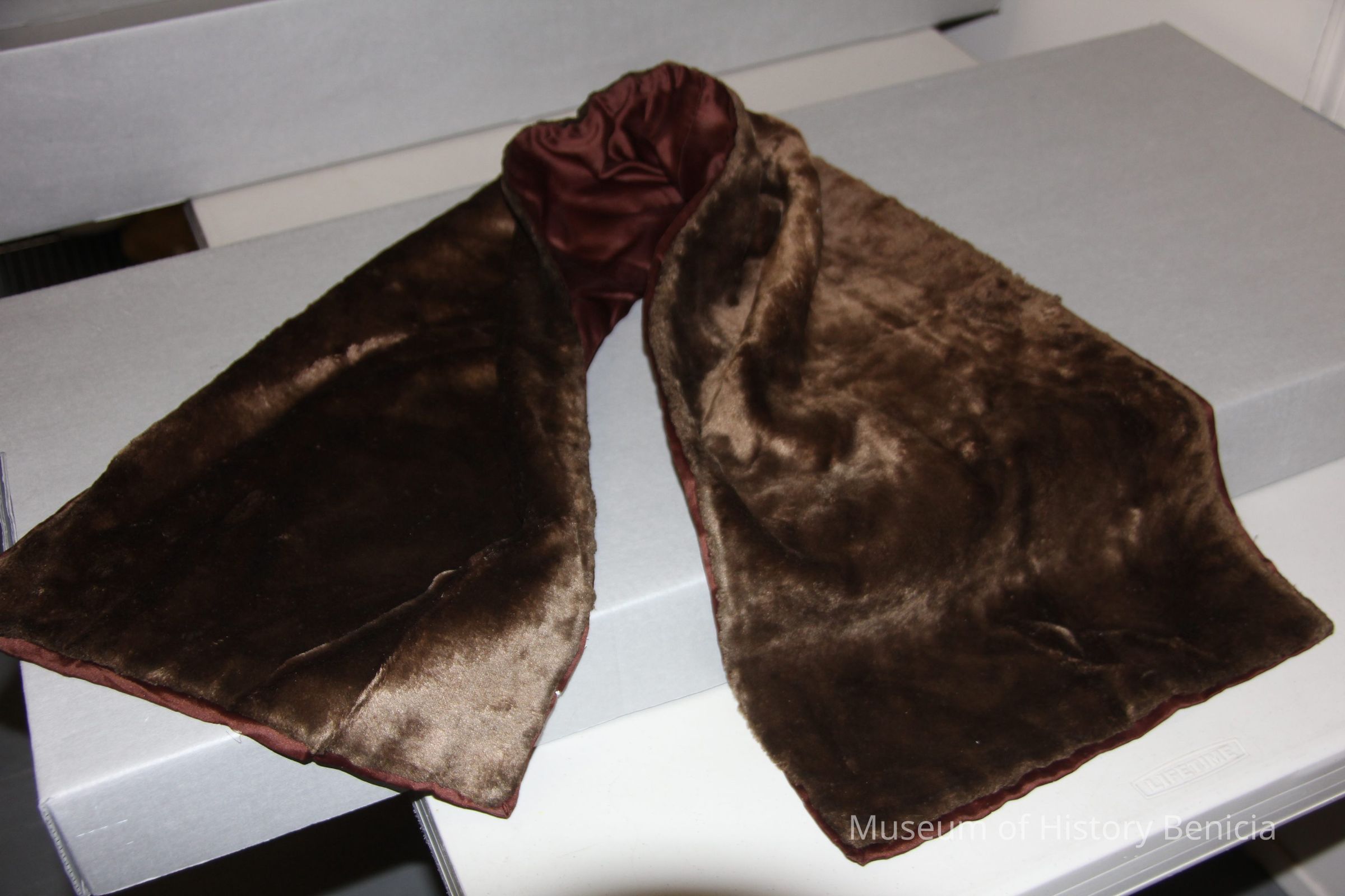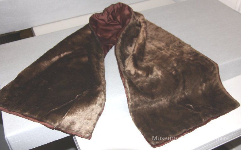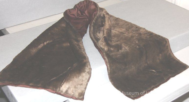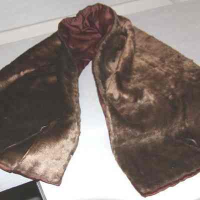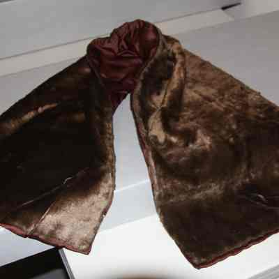 Furry, brown rectangular stole. Lined in brown satin