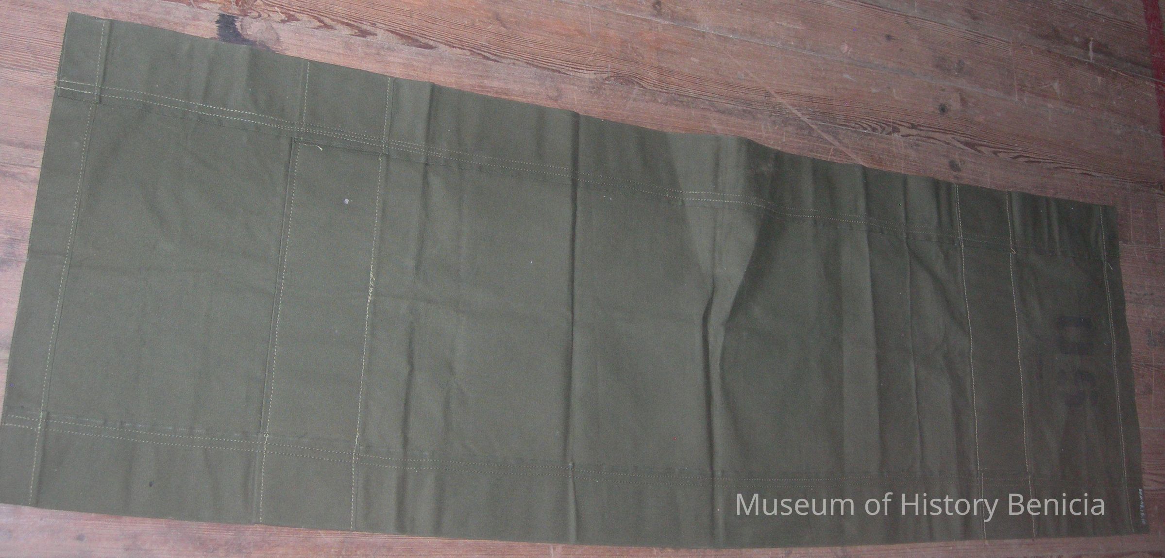 Transport/carrier used to move injured soldiers, stenciled with U S in black on green canvas