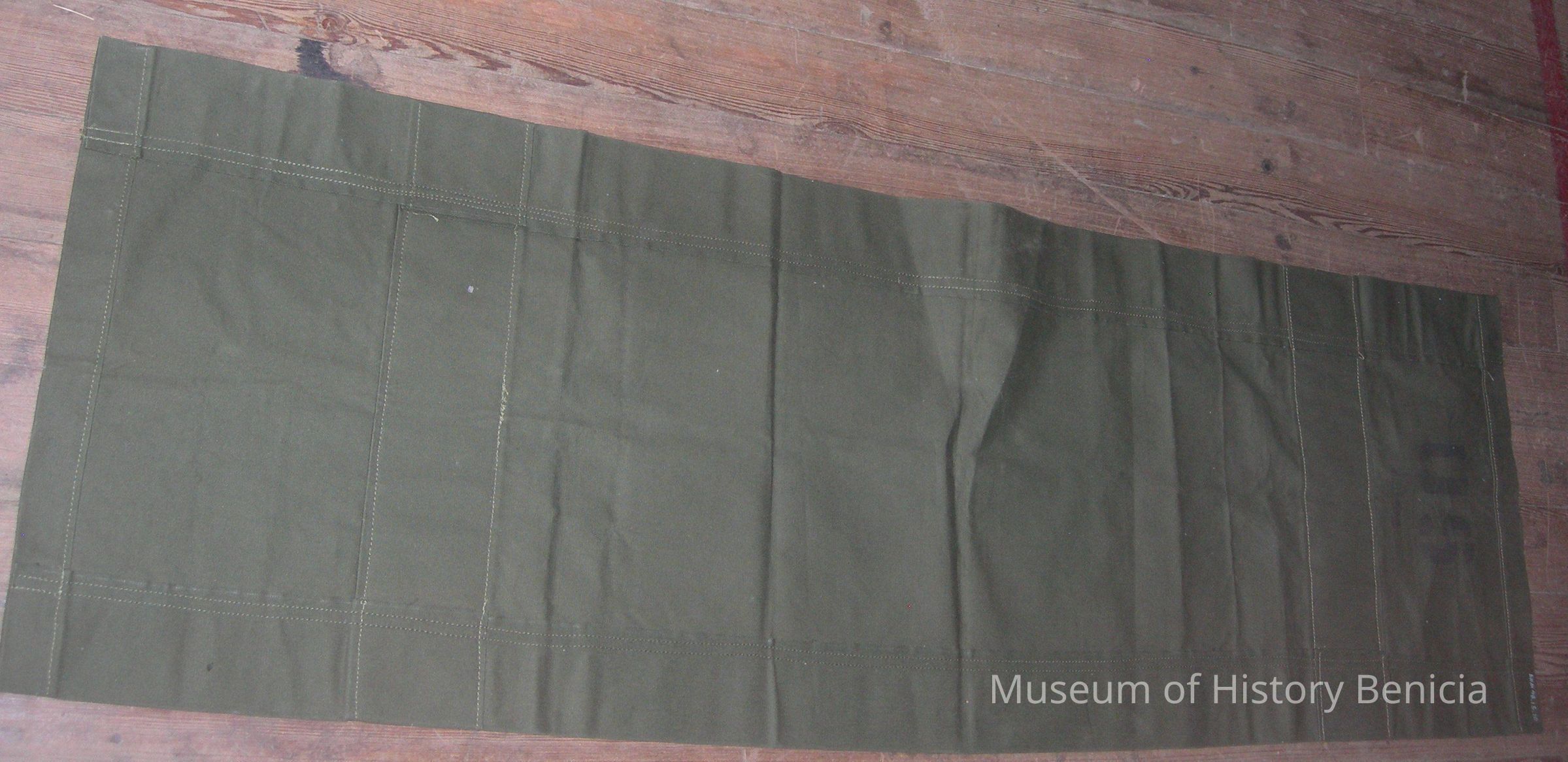 Transport/carrier used to move injured soldiers, stenciled with U S in black on green canvas