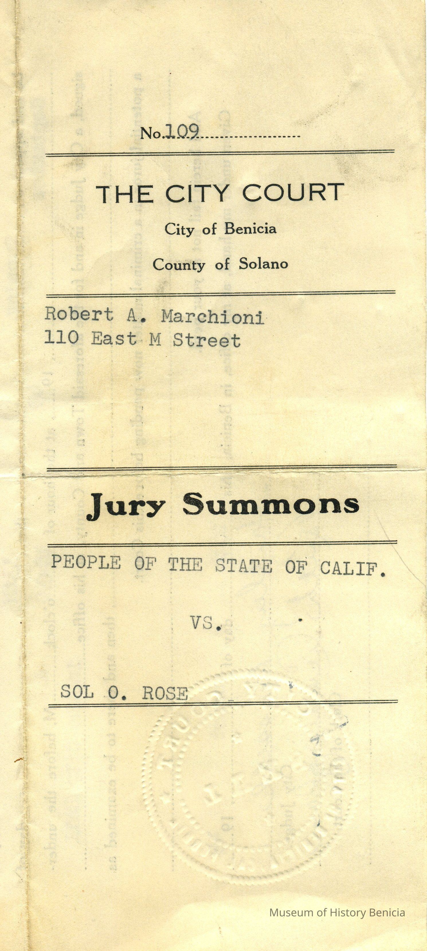 Jury Summons No. 109