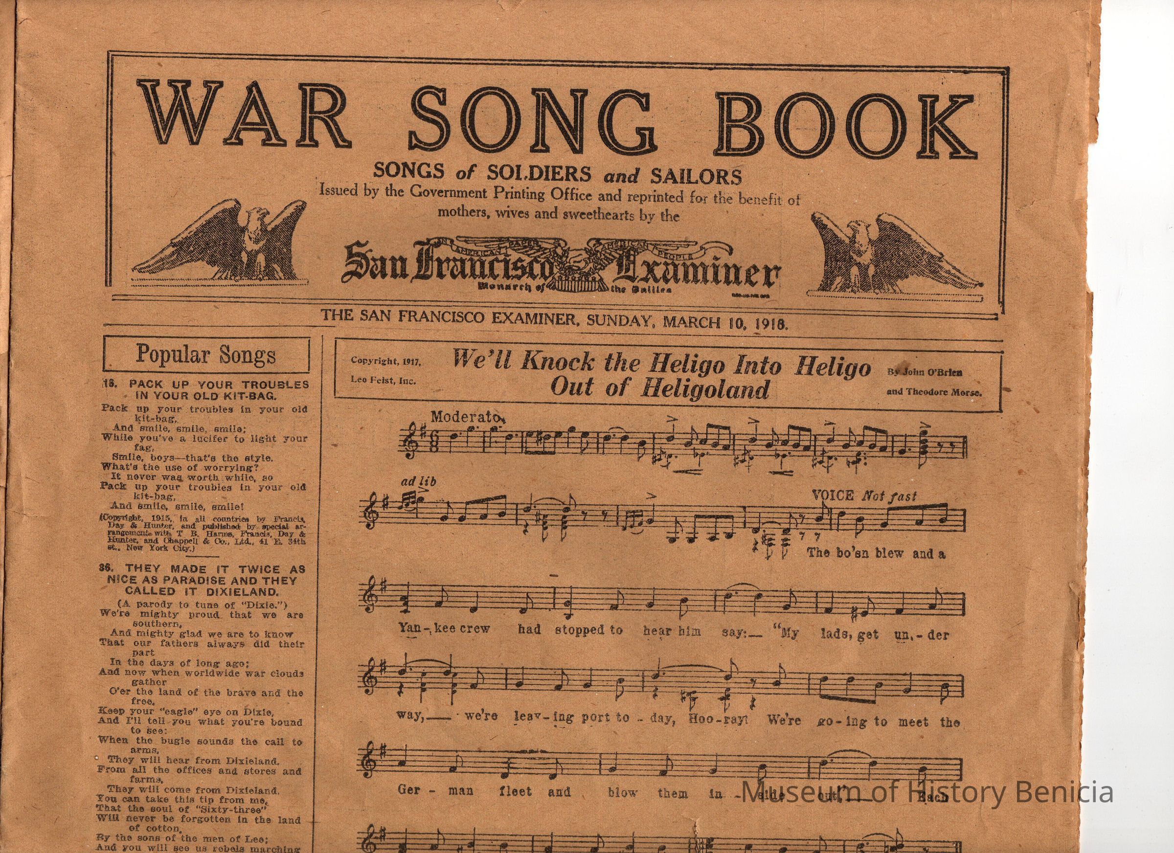 "War Song Book" Songs of Soldiers and Sailors