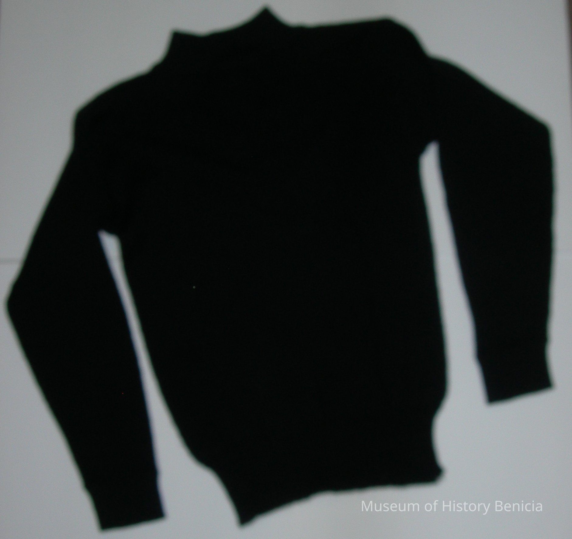Wool Navy Sweater - mock turtle neck; label: Size 38 - Navy Department, space for Name and Service No. (spaces are blank) Contact N140 622365-200858 (difficult to read due to fading); stretch cuffs, ribbed at bottom;