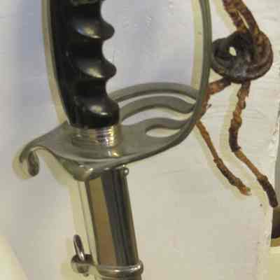 Sword belonging to Oscar Zar Warner from WWI. It has an etched blade (32") with the words "E Plurunum" on one side and "U.S." on the other. Oscar Warner's name is also etched into the blade. The manufacturer's name on the blade looks like "Horstman Philadelphia". This may be a calvary sword.Collection