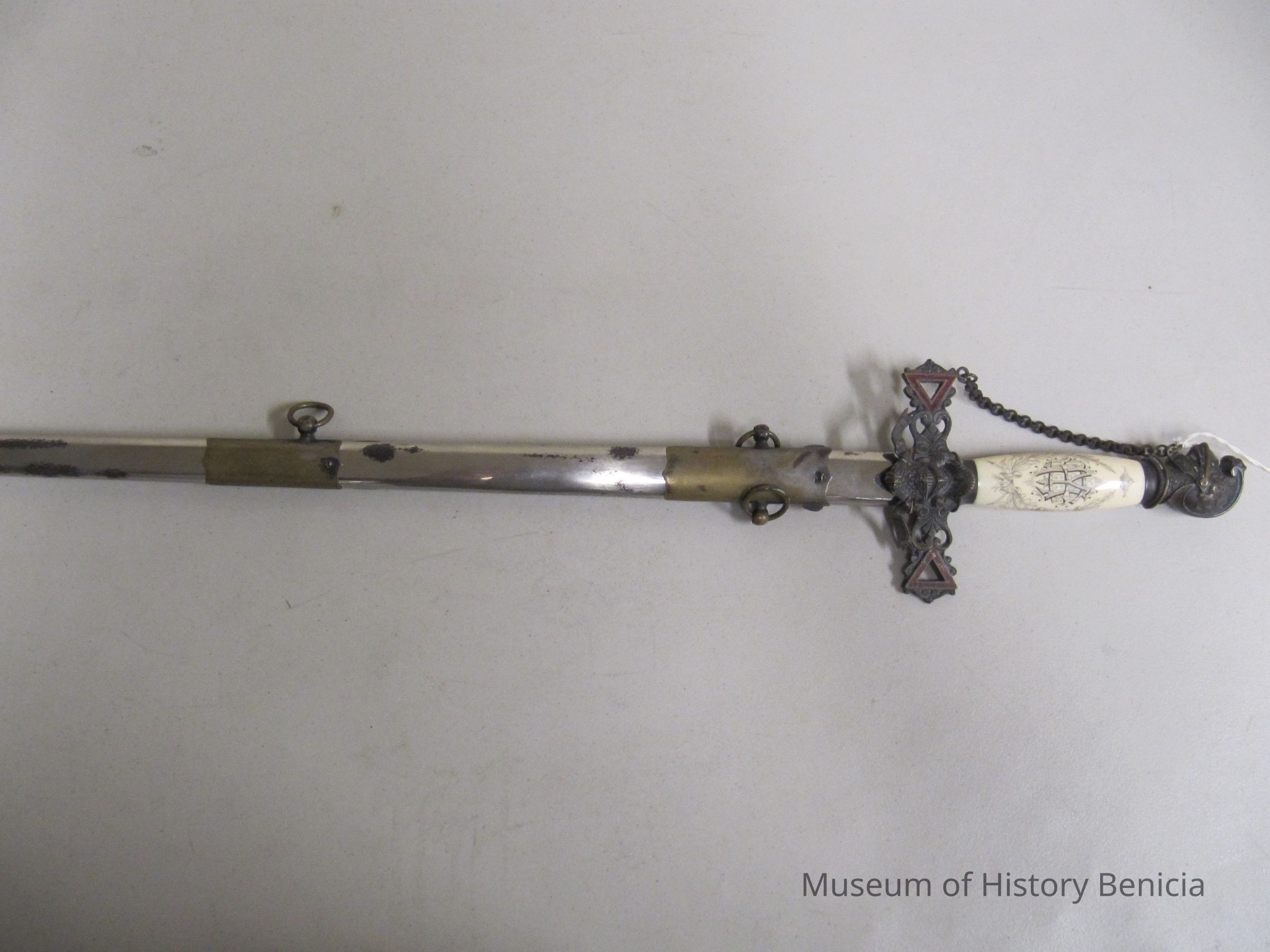 Sword from Knights of Columbus used by Elijah Morton. He was the Great Grandfather of John E Kloske who was a brother of Jerry Ann Cook.