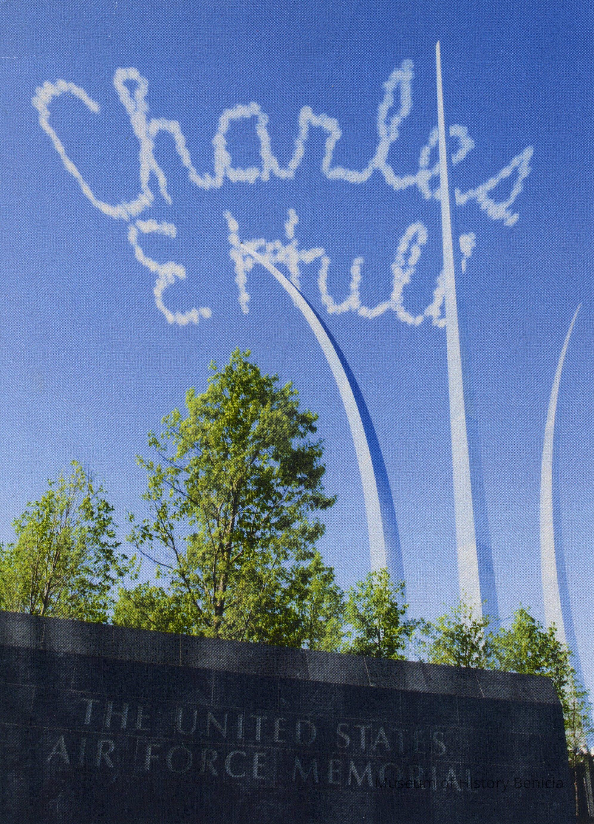 a. Book Mark: 7" x 5" - shows a section of the United States Air Force Memorial and above "Charles E. Hull" in white on blue sky simulating sky writing.