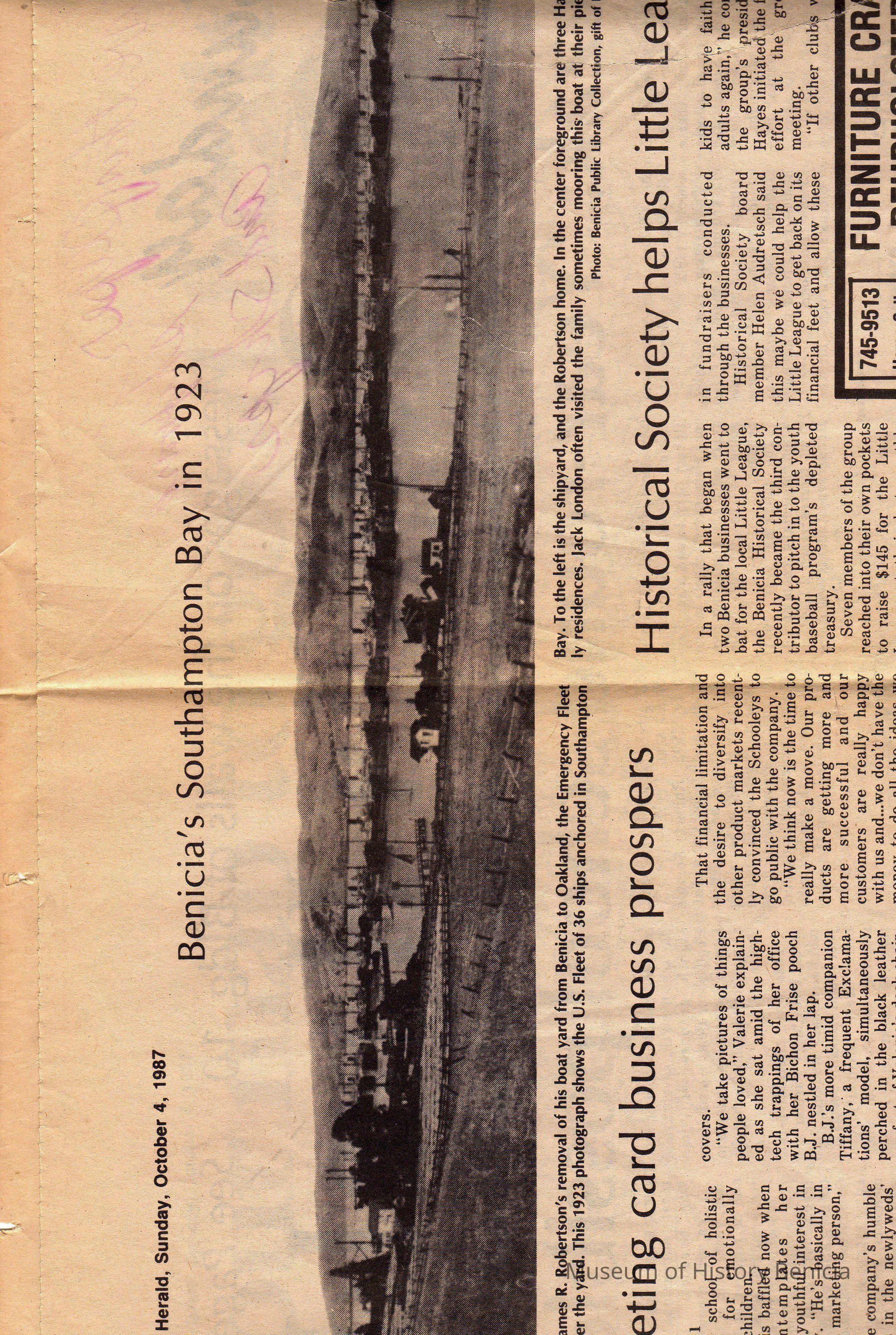 The Benicia Herald, Sunday, October 4, 1987 Benicia's Southhampton Bay in 1923