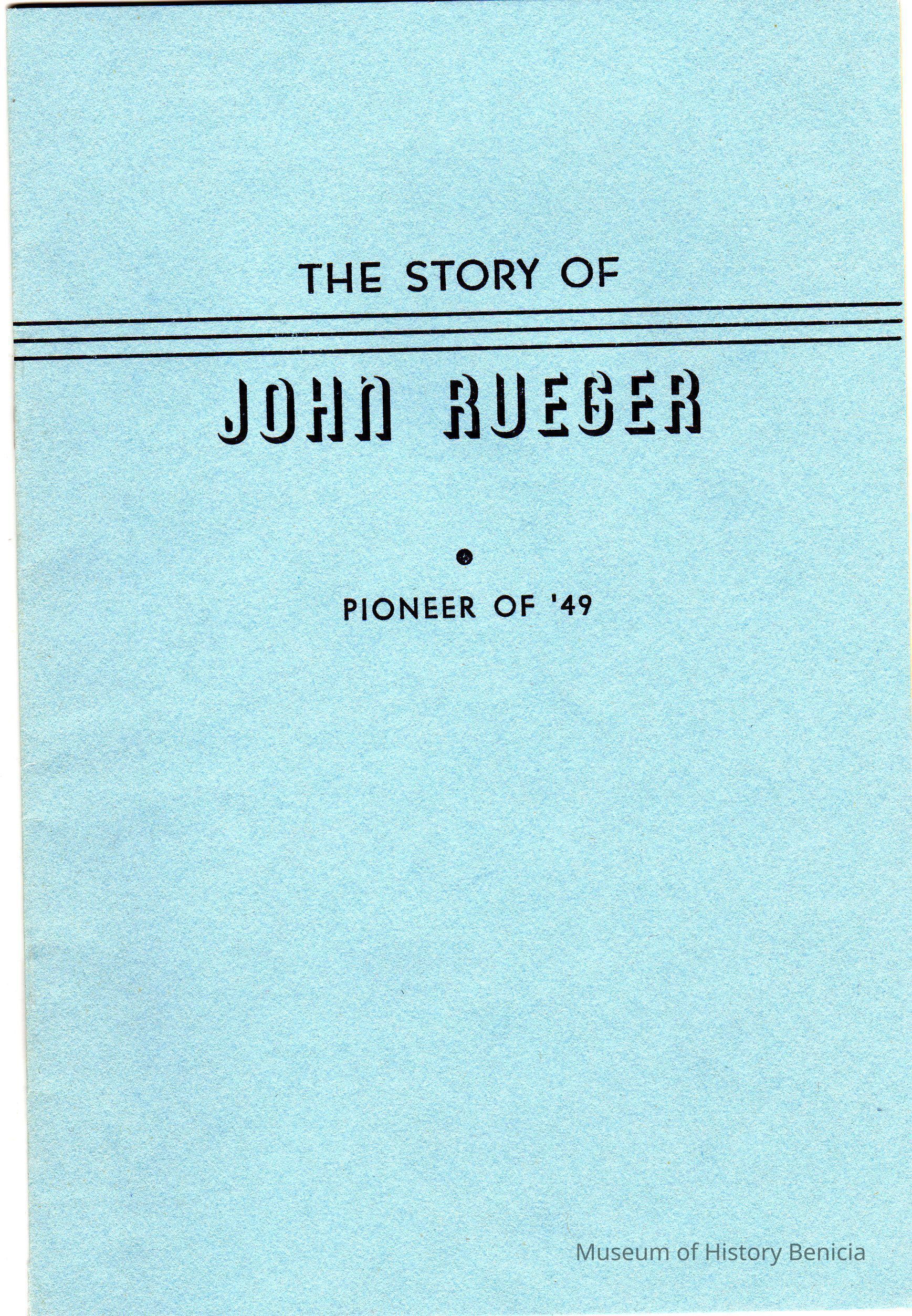 This 15 page booklet tells the story of John Rueger coming to California. John Rueger started the Benicia Brewery.