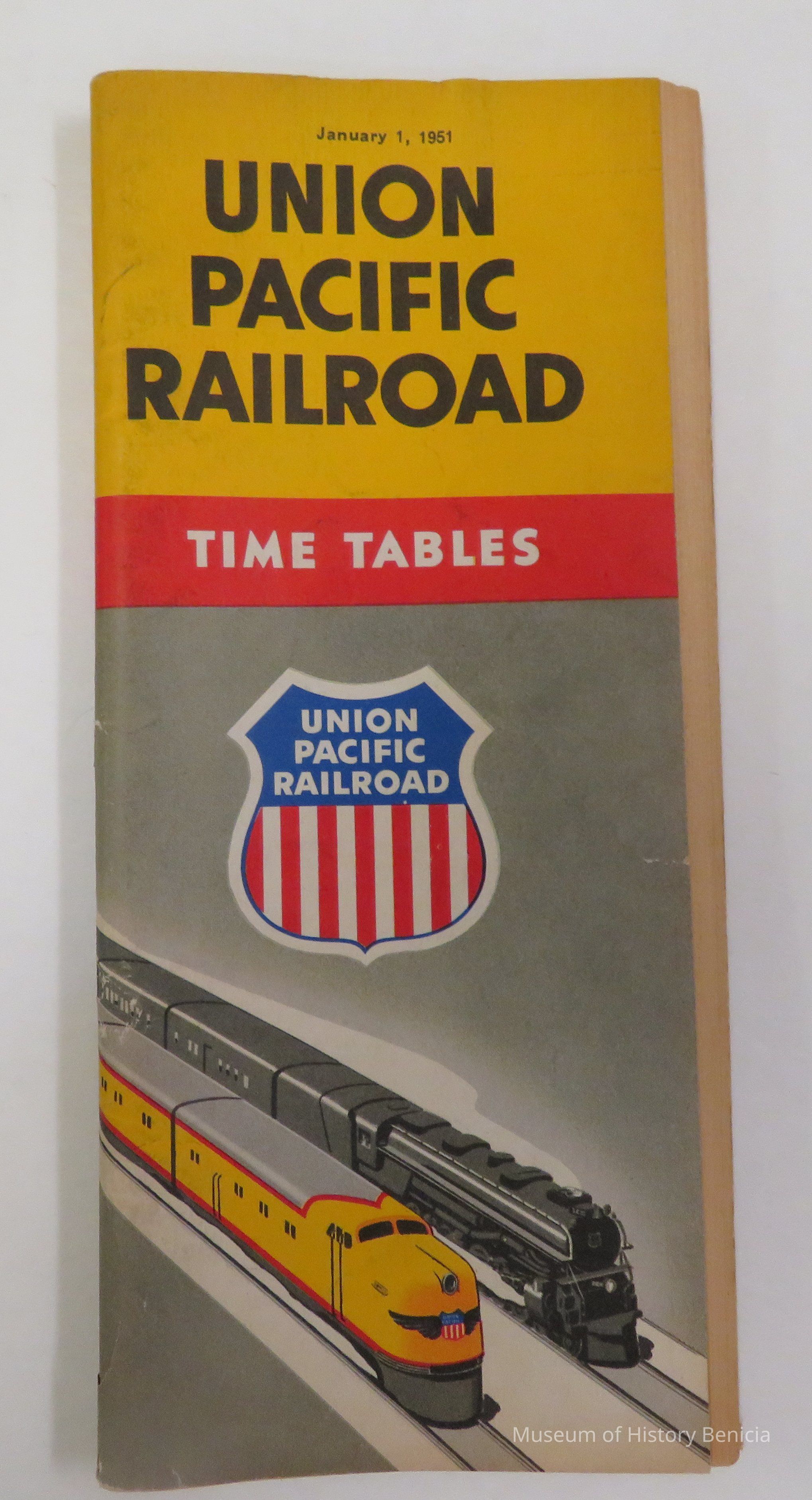 Union Pacific Railroad Time Tables booklet, 52 pages. Dated January 1, 1951, includes index and routes throughout United States. 8" x 9"