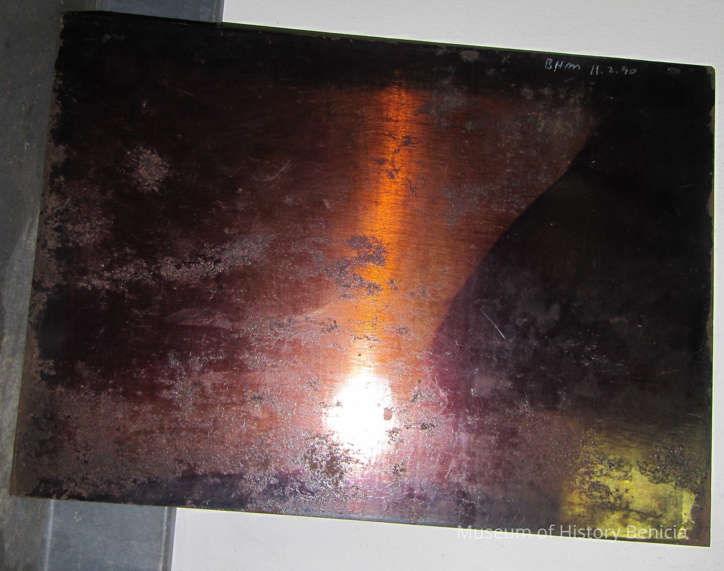 Metal plate that came with photographic material from Crouse/Myers family. These may be plates for creating tin types. They may also be some kind of divider for a metal file cabinet.Collection