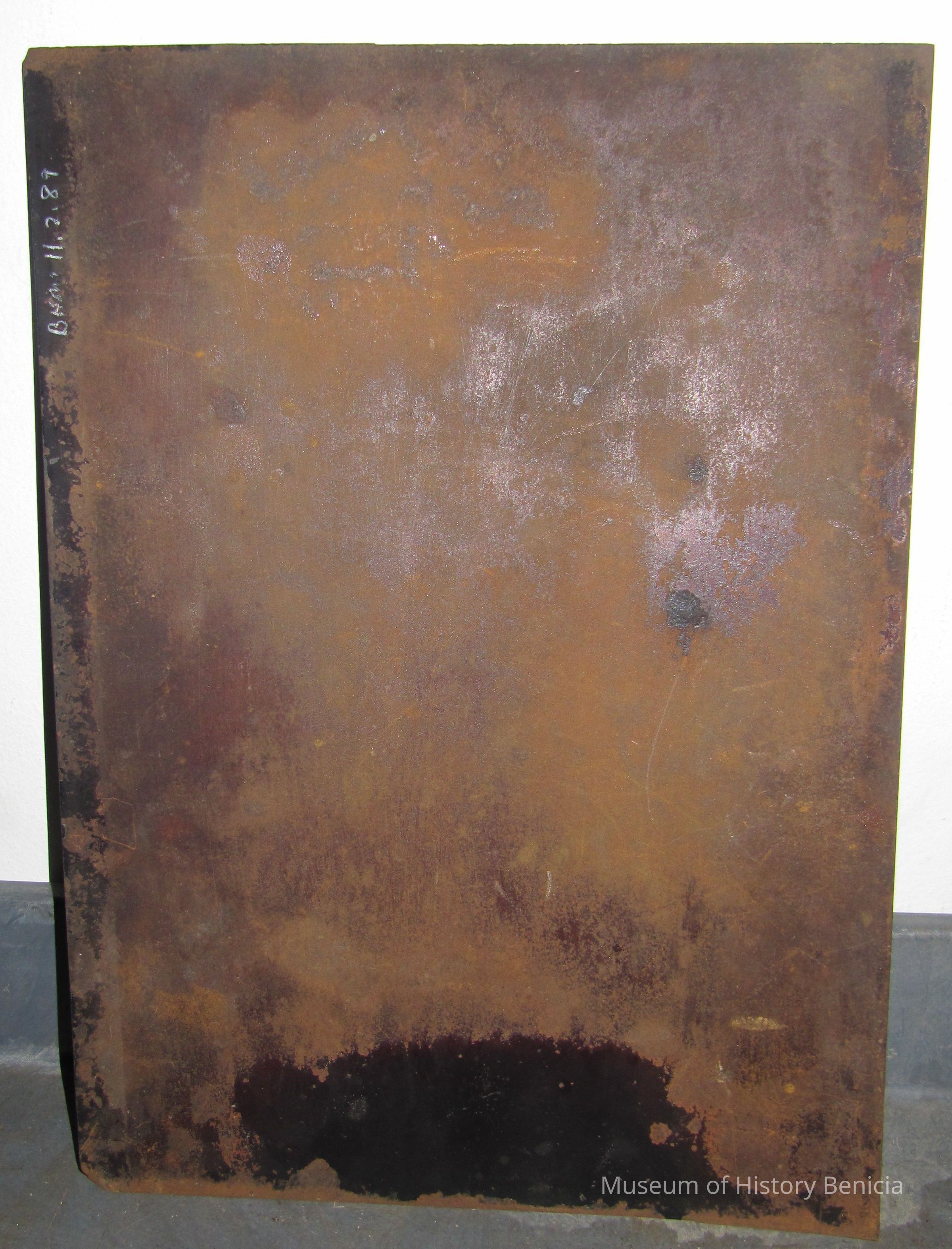 Metal plate that came with photographic material from Crouse/Myers family. These may be plates for creating tin types. They may also be some kind of divider for a metal file cabinet.Collection