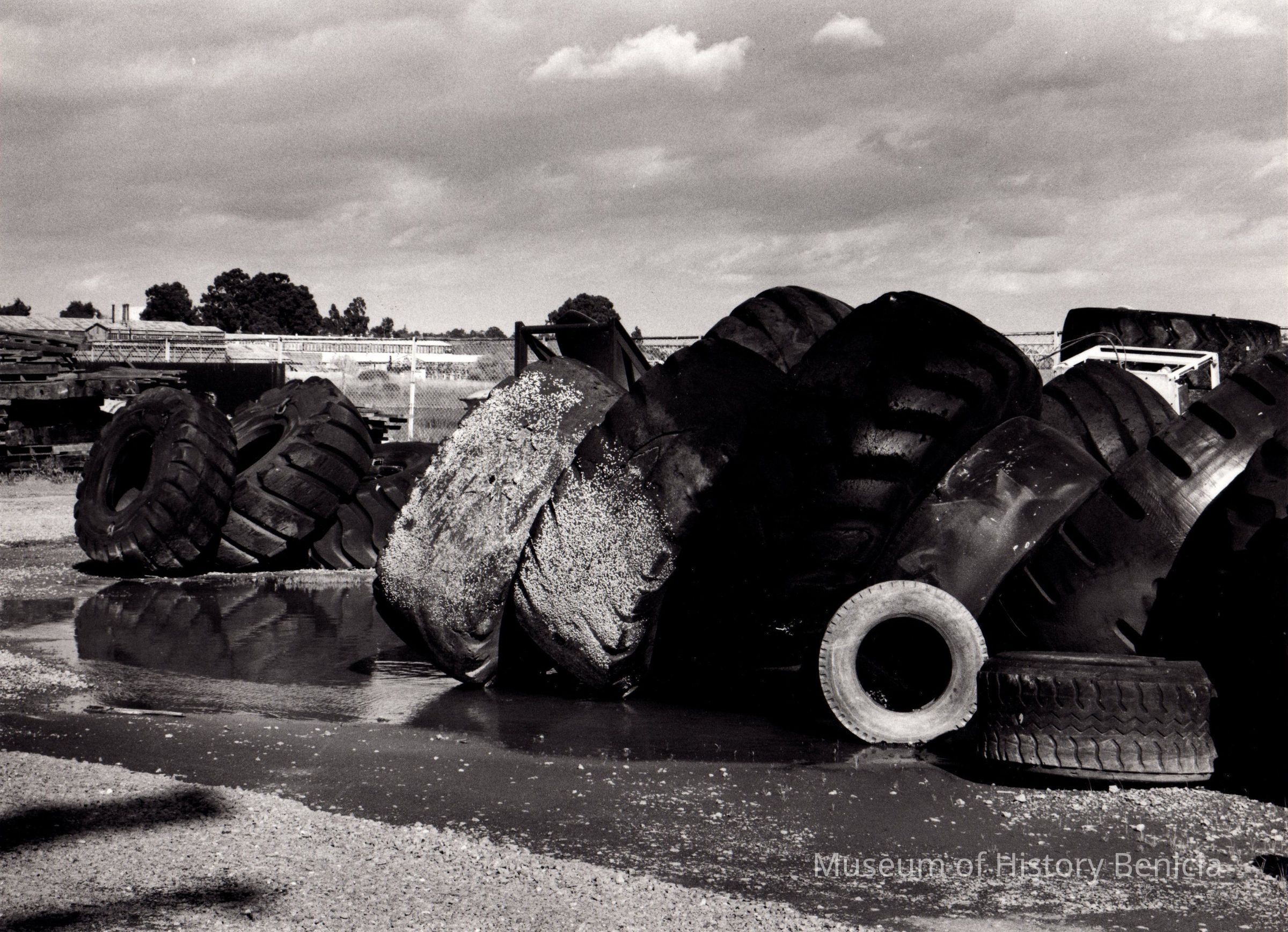 B/W Photograph: "Tires" pile of large and small truck/tractor tires (exact location unknown)