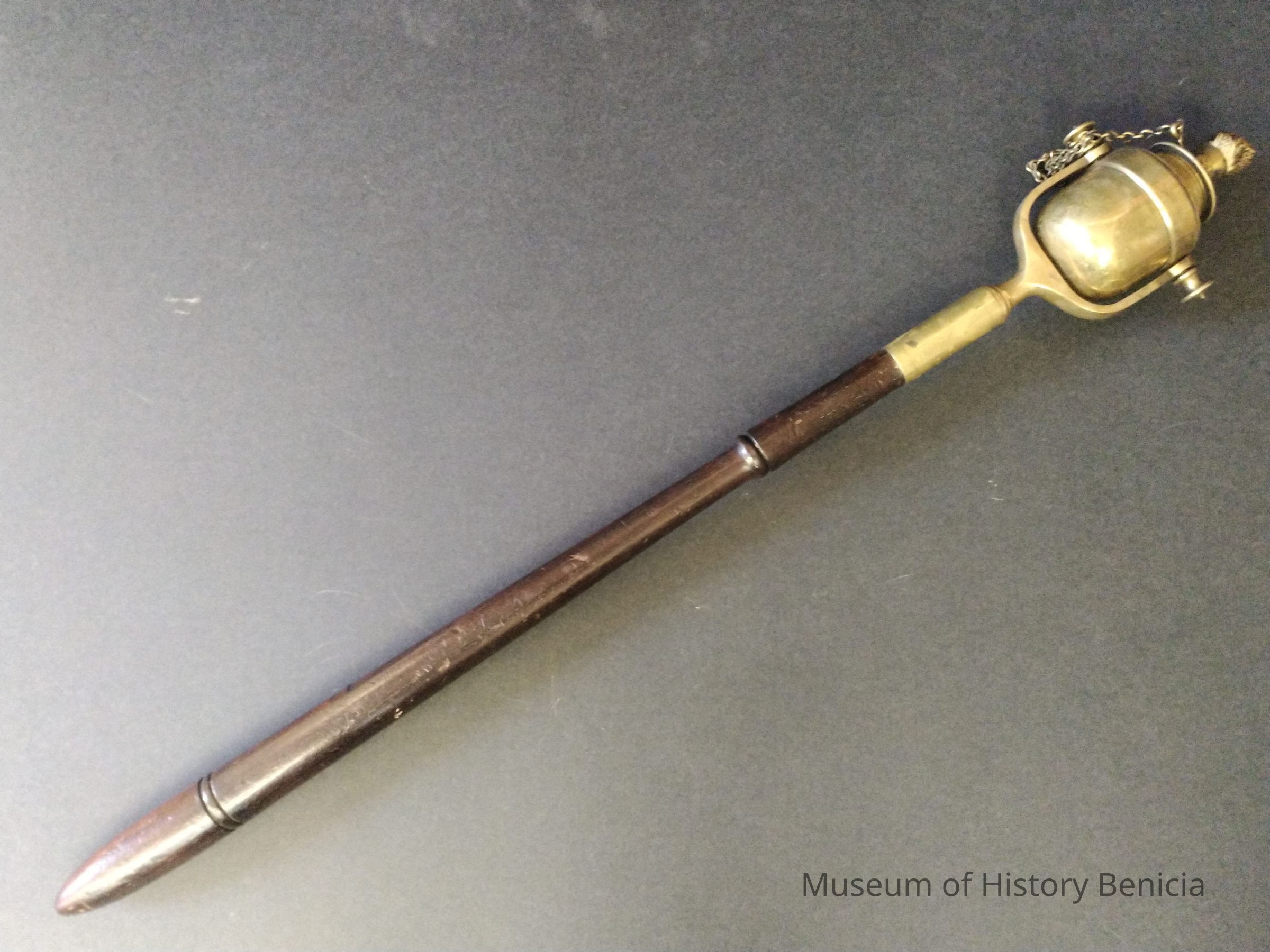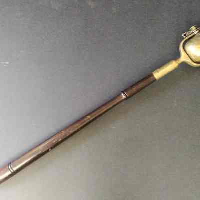 Brass and Mahogany Fire Torch c. 1850s - INTACT WICK