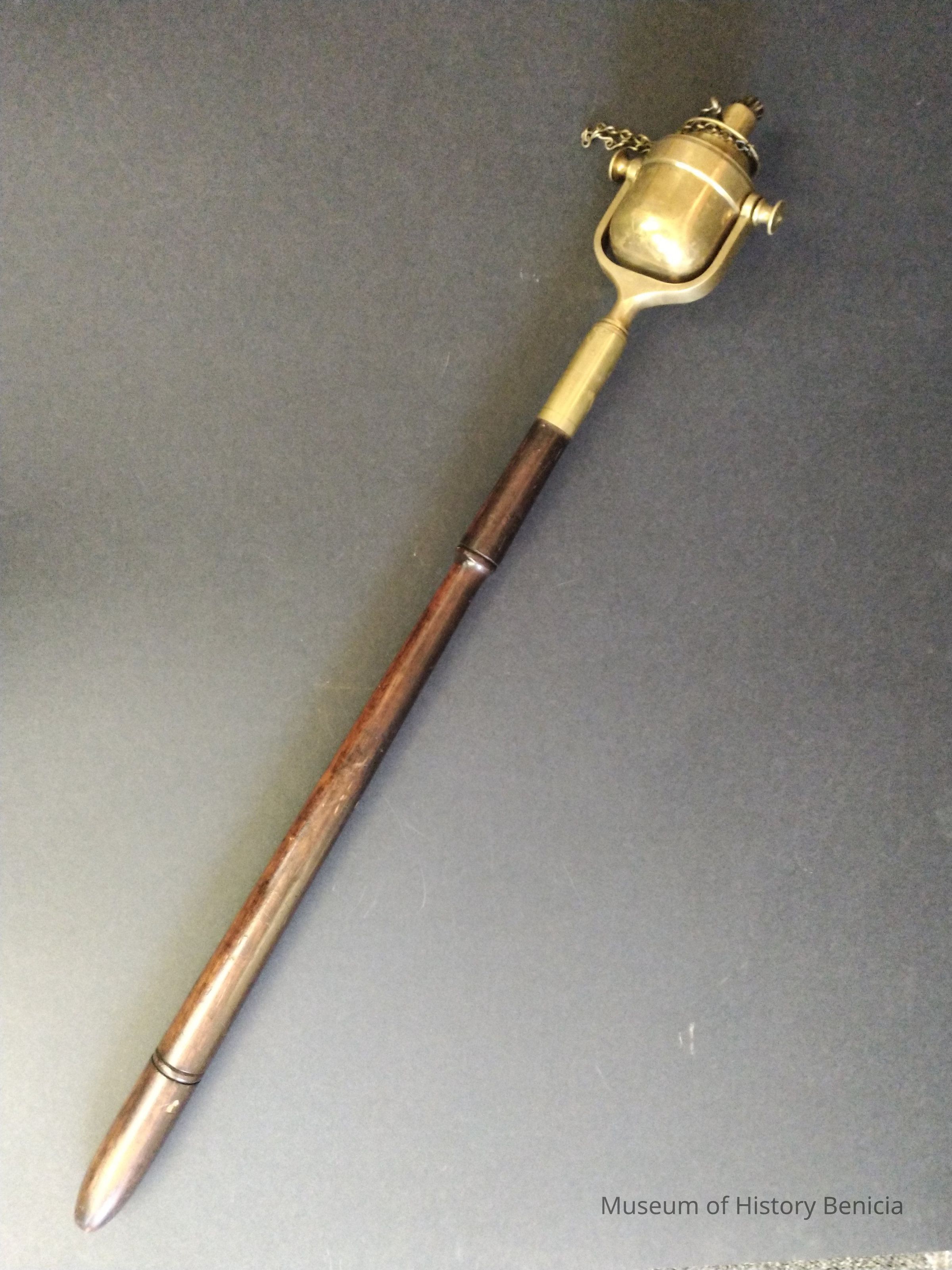 Brass and mahogany Fire Torch - Used to light up work area for fire chief at fires c.1850
