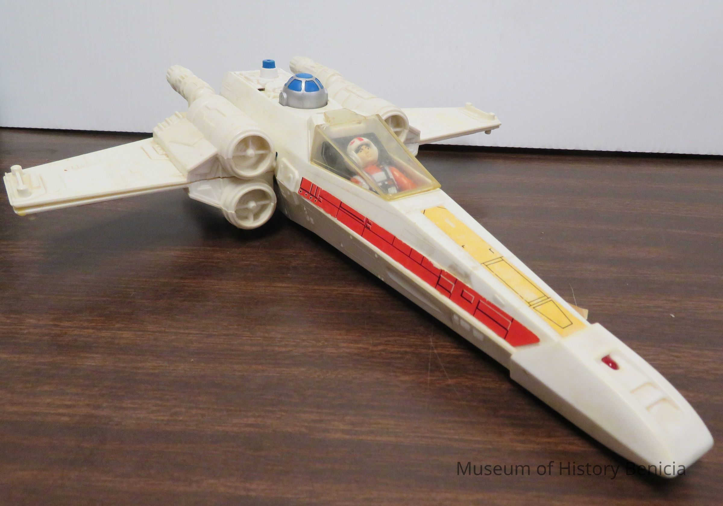 Star Wars 1977 Kenner X Wing Fighter. R2 D2 is attached to the back of it and the majority of the original stickers have worn off. (A New Hope, The Empire Strikes Back, Return of the Jedi; 1977, 1980, 1983)Collection