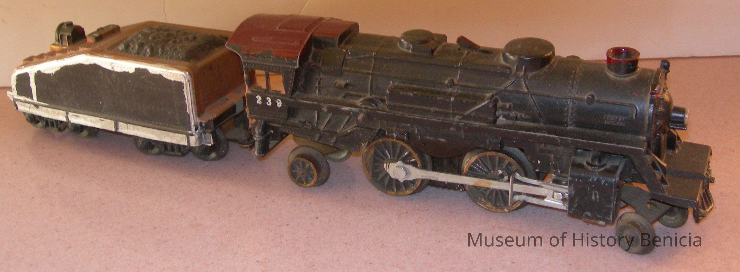 Toy engine tender car, plastic, partially repainted;