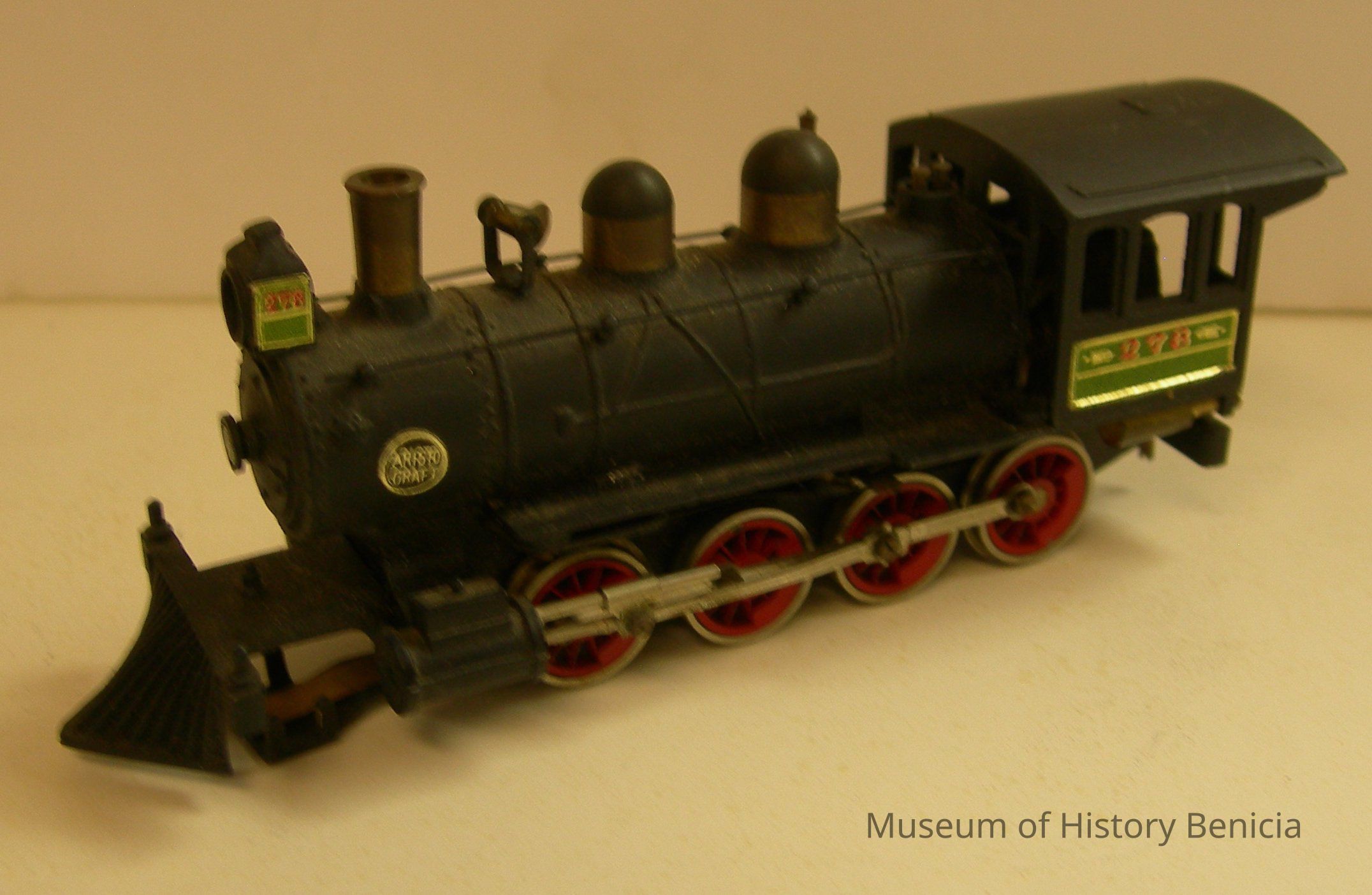 Toy metal train car - Black Engine #278 with red on the wheels; on bottom: "New One Model Tokyo Japan; heavy for its size and very detaled; "Aristo Craft: label on both sides;