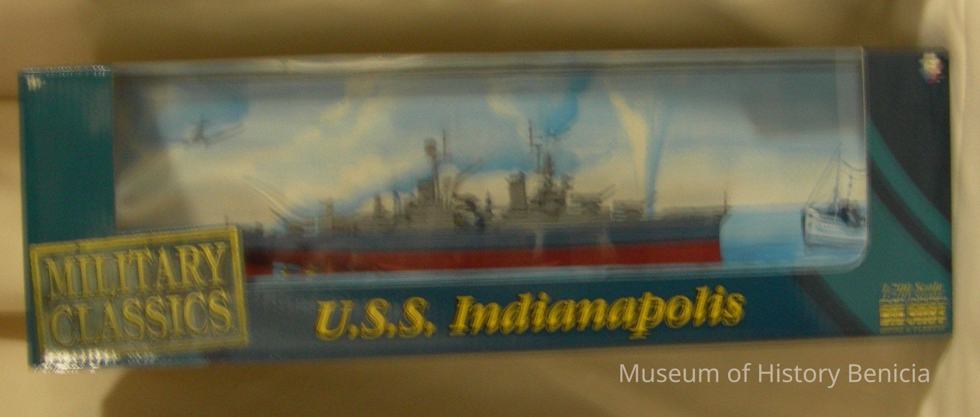Toy model of the U.S.S. Indianapolis from WWII. The ship carried vital components for the atomic bomb attack on Japan. A Benician, Harold Bray, was a survivor. Stored in original boxCollection