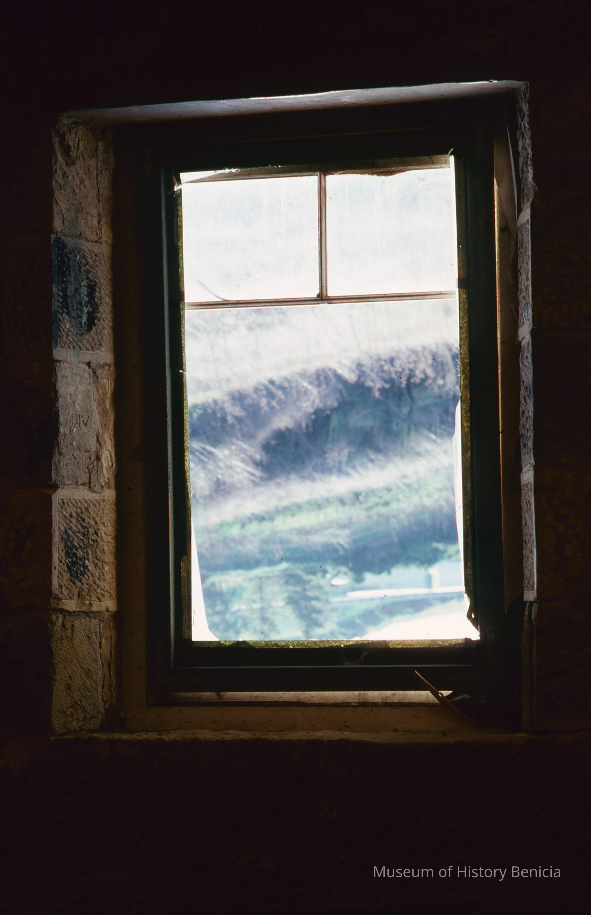 Looking out a window from the interior of building #9 Camel Barn Museum Restoration