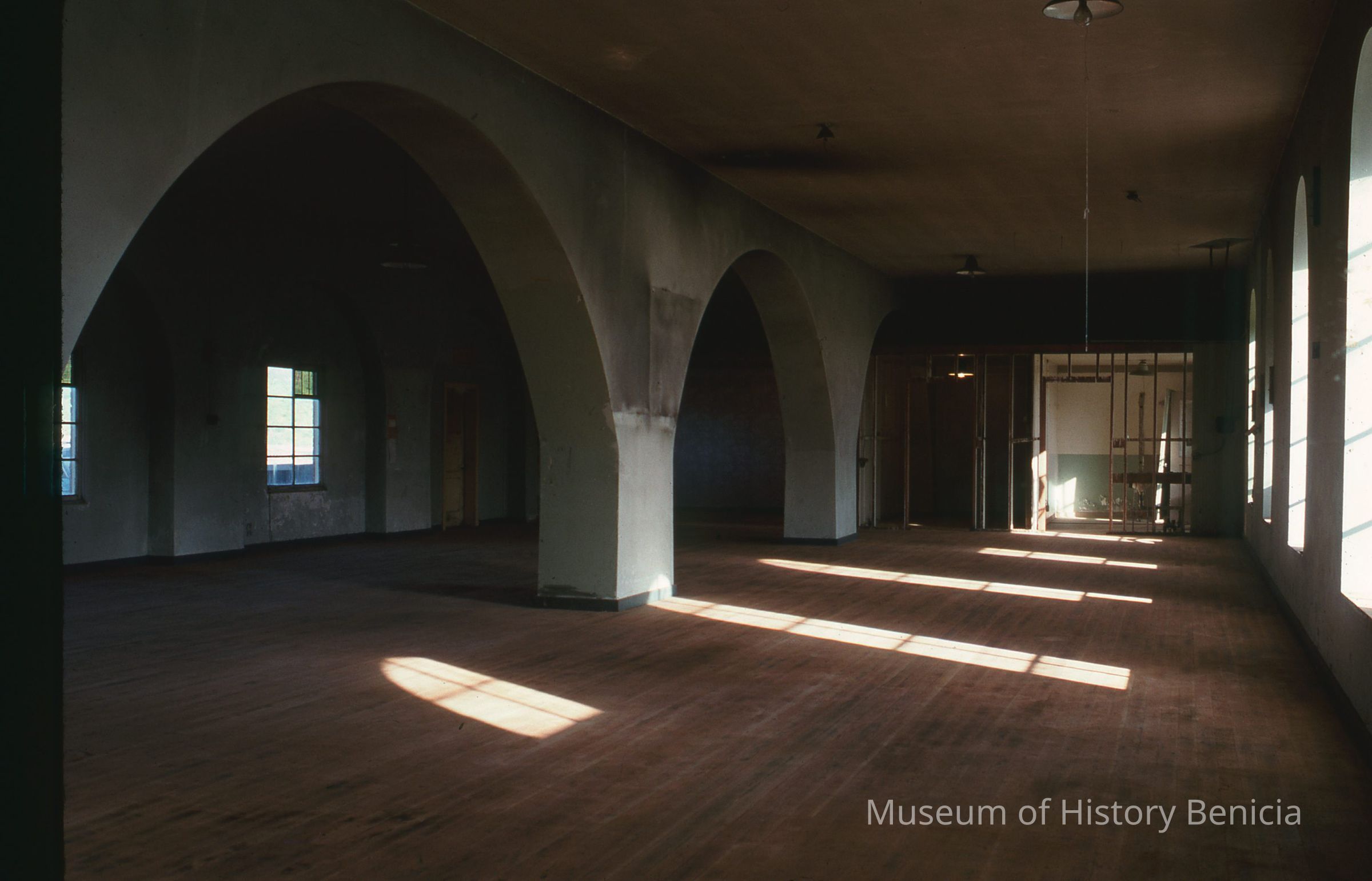 Interior view of building #9 Hall restoration (shows arches) Camel Barn Museum Restoration