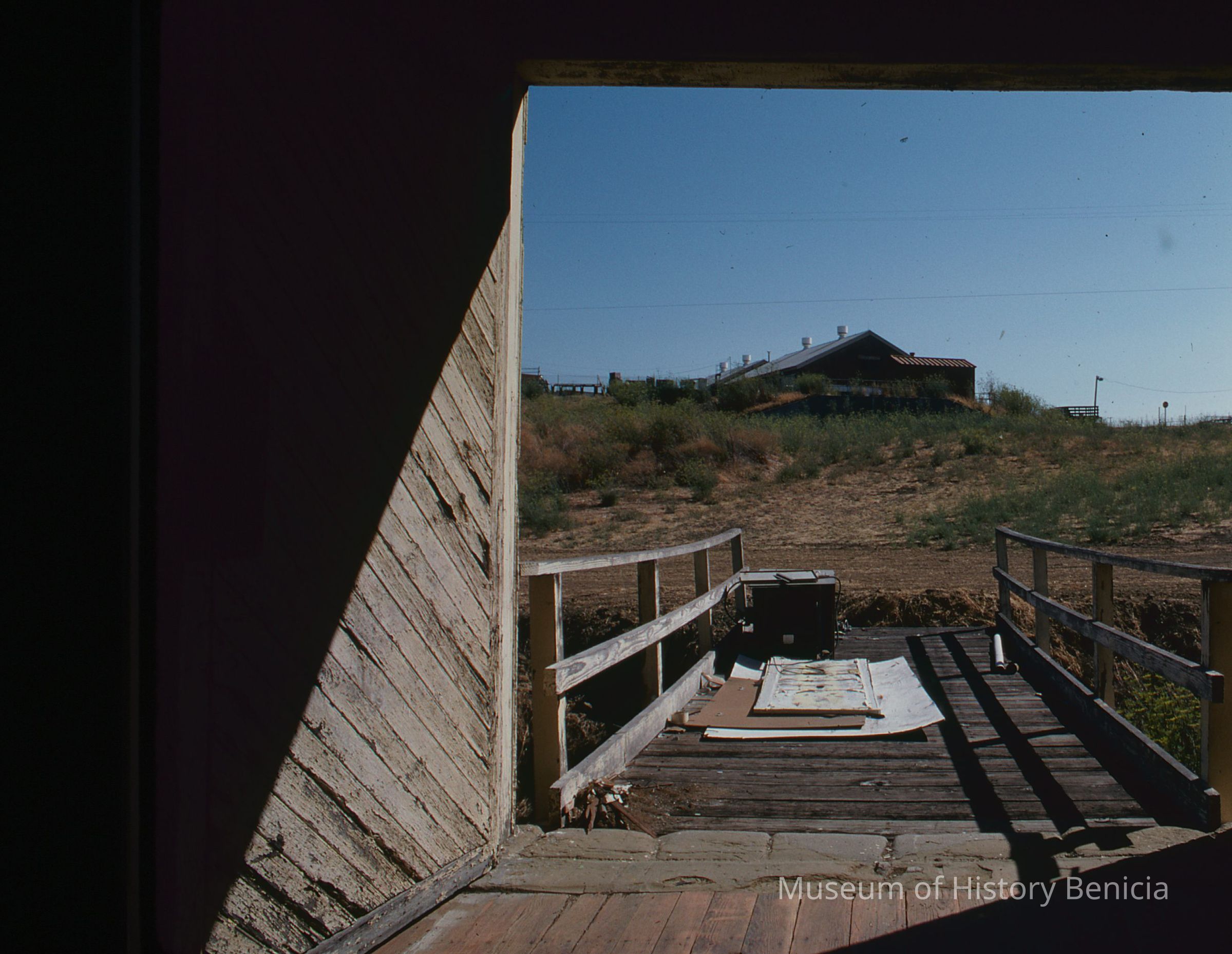 View looking out front door of building #9 (shows bridge into museum) Camel Barn Museum Restoration