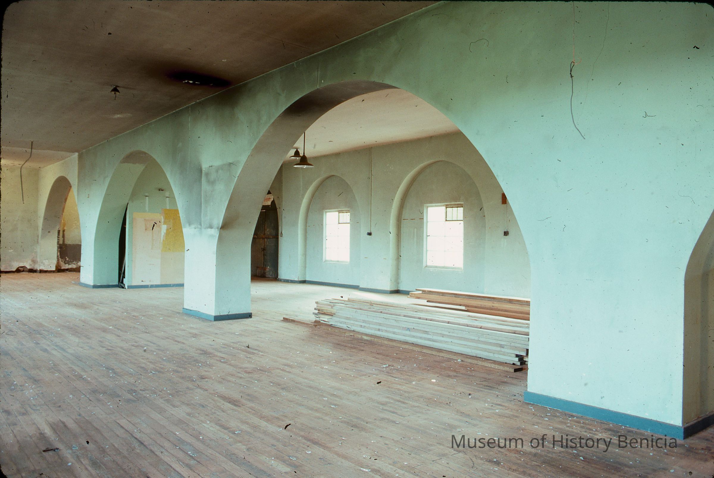 Interior view building #9 Hall restoration (shows arches) Camel Barn Museum Restoration
