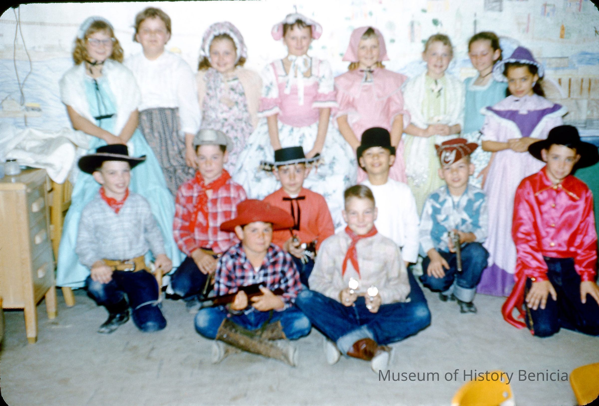 35mm Color Slide: costumed school children who participated in the rededication of the Benicia State Capitol; a large group of unidentified students in a classroomCollection