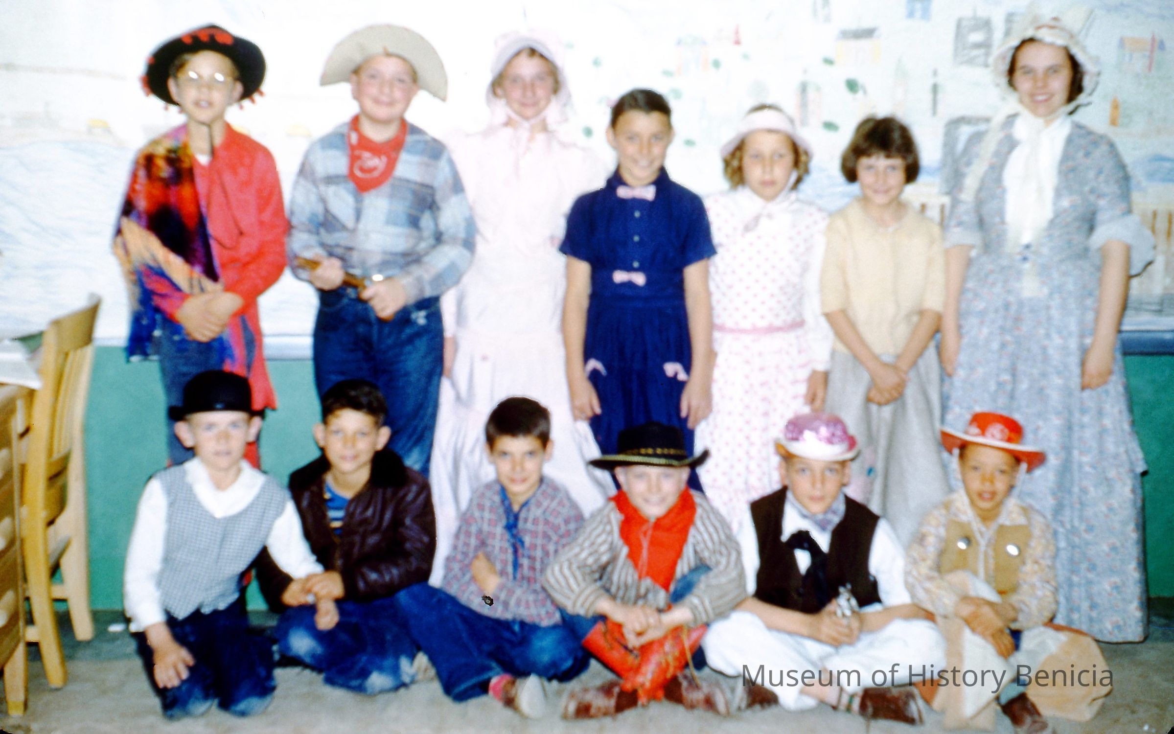 35mm Color Slide: costumed school children who participated in the rededication of the Benicia State Capitol; a large group of unidentified students in a classroomCollection