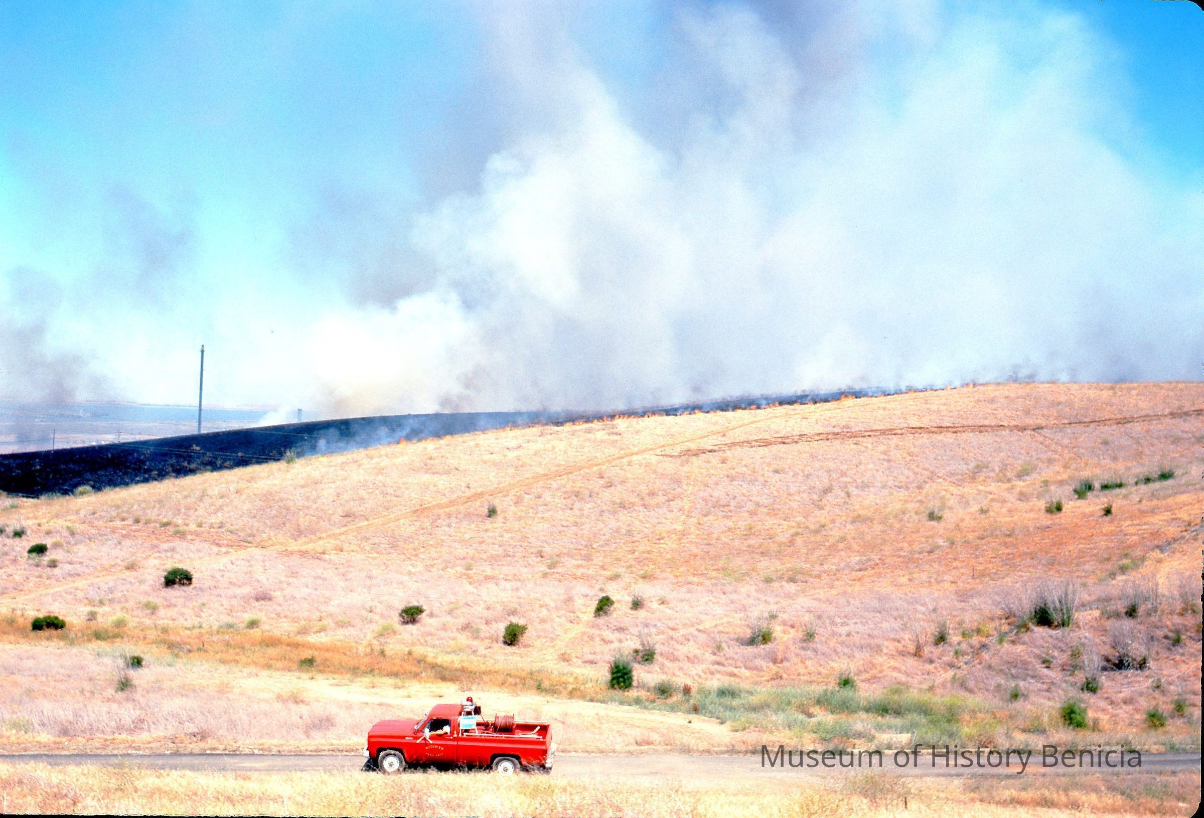 35mm Color Slide: field fire in Benicia; near Exxon (Valero) Refinery