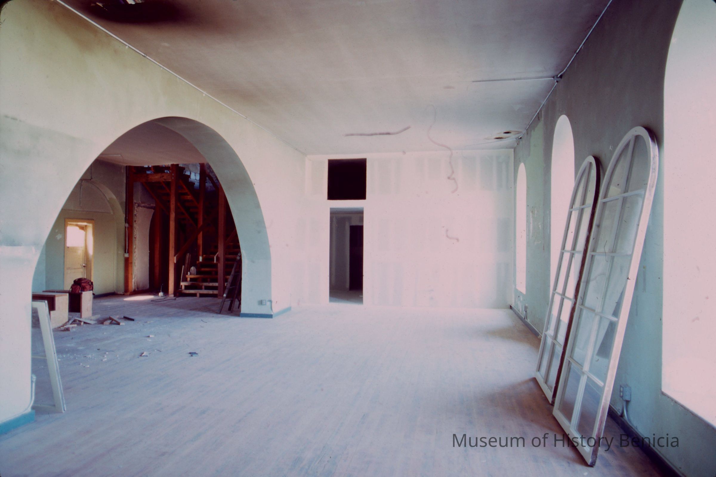 Bldg. 9 downstairs replacement of windows during modification to establish museum. 35 mm slide.