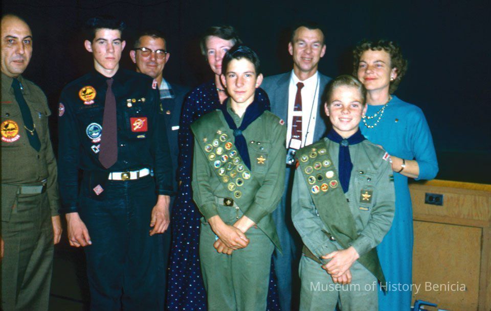 color 35mm slide: Boy Scouts and Parents - L-R: 1. Scout Master 2. Jim Cowles