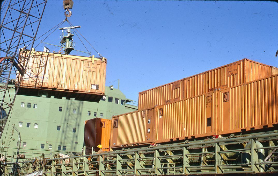 35mm Color Slide: according to caption on the holder: "Sognefjell" (ship) cargo being loaded