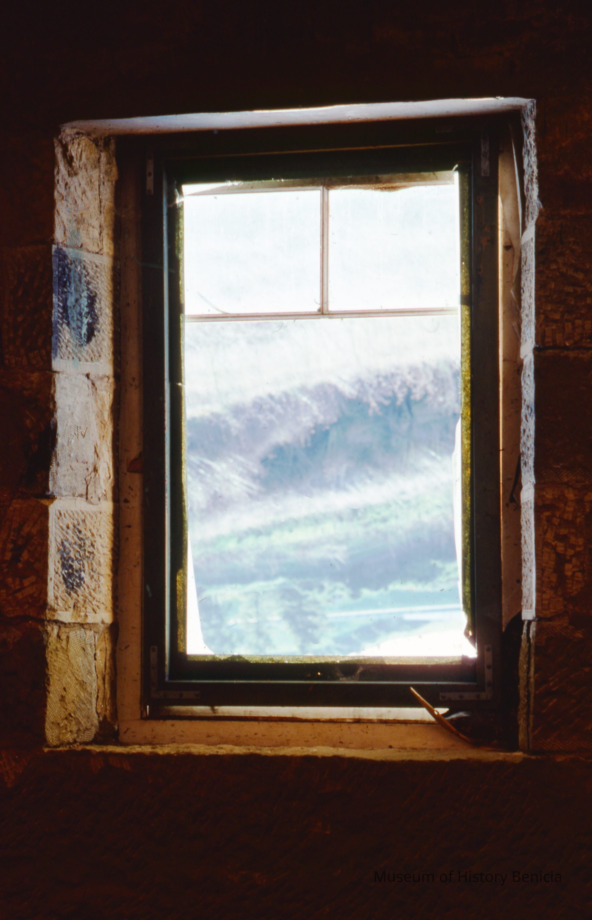 Bldg. 9 upstairs window facing east during modification to establish museum. 35 mm color slide.