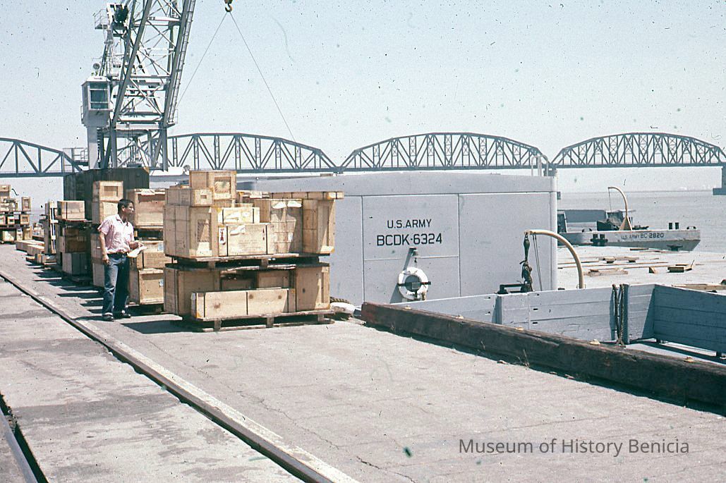 Slide taken by Mrs Cowell of the docks at the Benicia Arsenal.