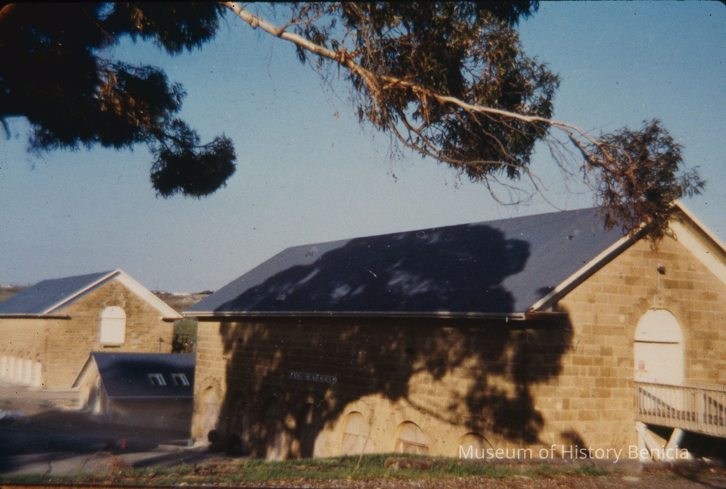 Camel Barns, Benicia Arsenal: bldg. 7 at left (storehouse, 1853), bldg. 8 in center (engine house, now museum office, 1855), bldg. 9 at right (museum, 1854).Collection