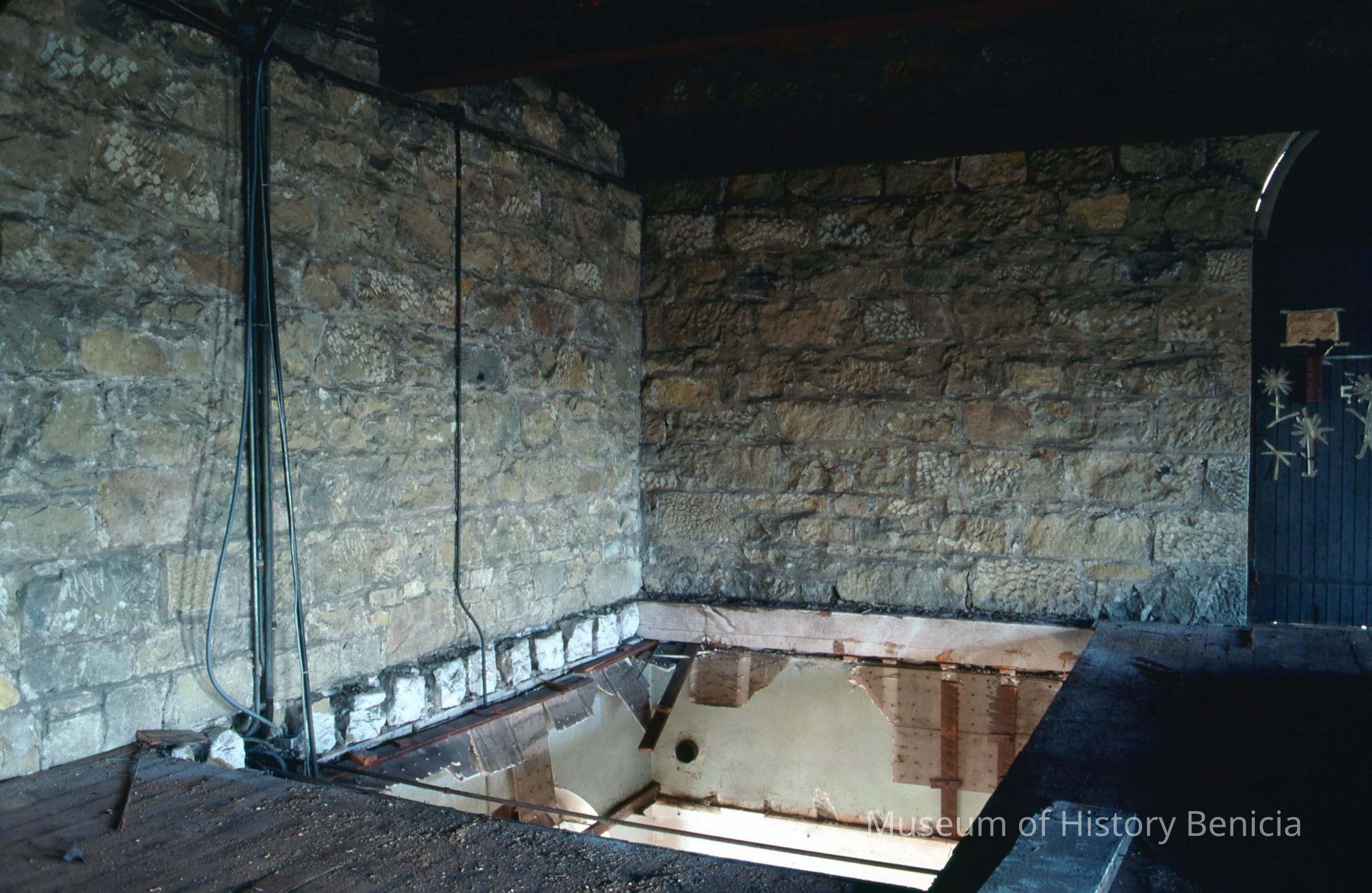 Opening for stairway from upper room Bldg.9 during modification to establish museum.