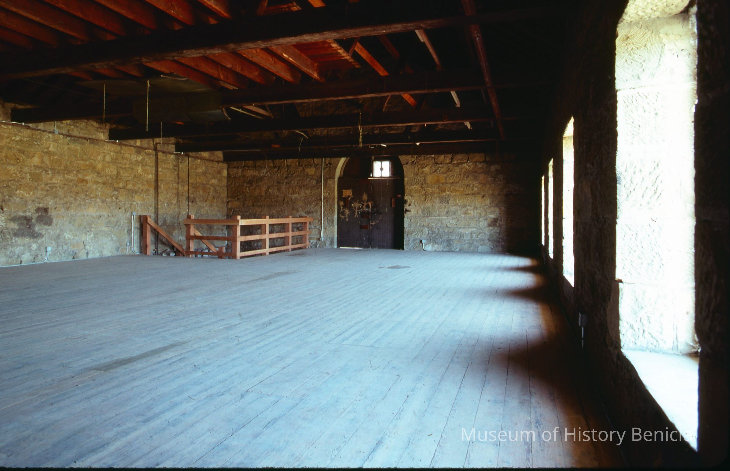 Far view from upstairs of new stairway in Bldg. 9 during modification to establish museum.