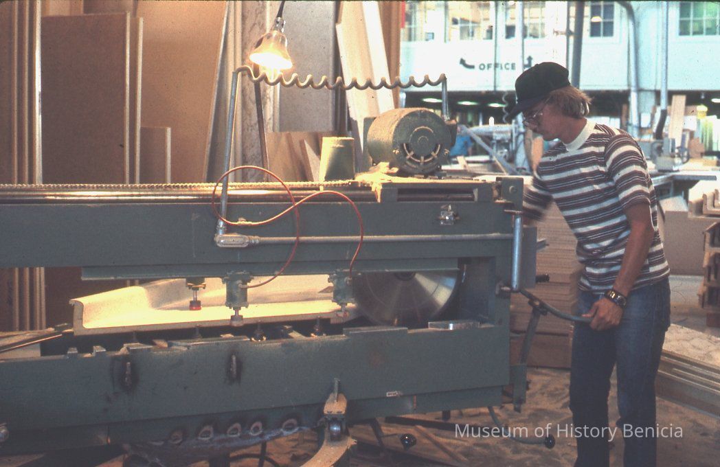 35mm Color Slide: Suba Manufacturing: shows employee operating machinery to prepare the product