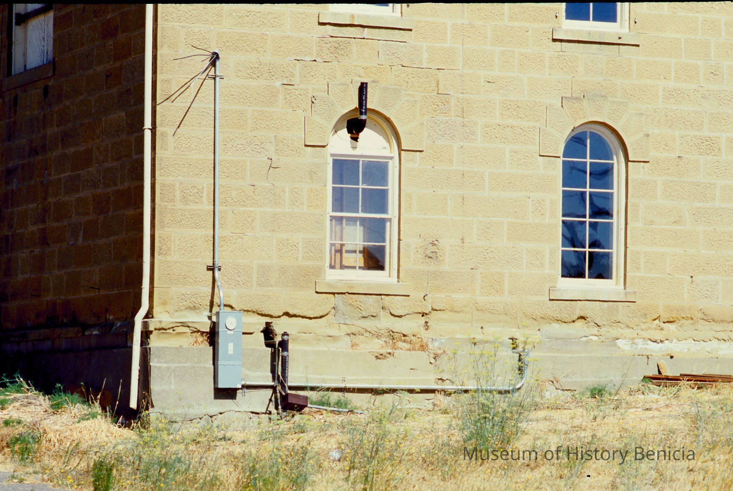 Modifications made to Bldg. 9 to establish a museum. Outside of east wall, south end. 35 mm slide.