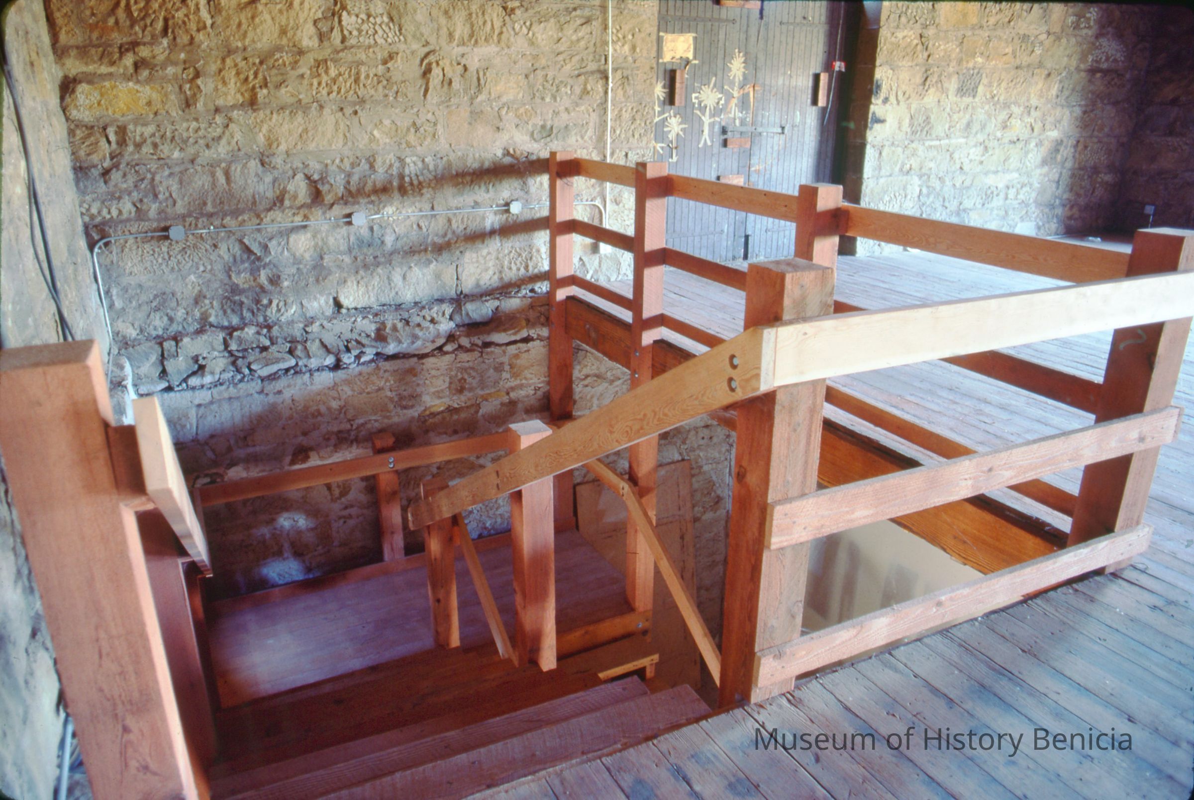 Modification made to Bldg.9 to establish a museum detailed view from up stairs of new stair way. 35 mm Slide